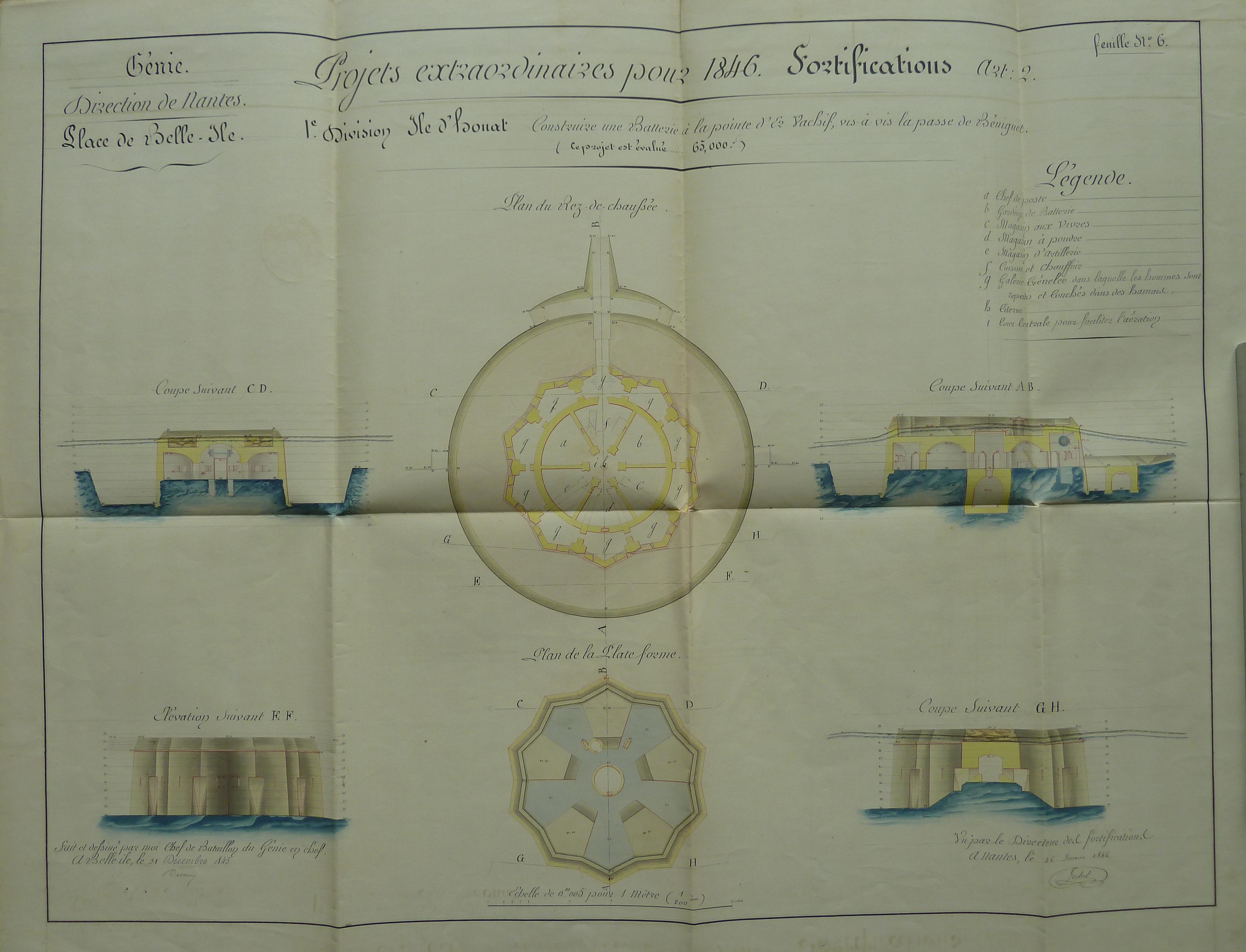 Place de Belle-Ile, feuille n° 6 des projets extraordinaires pour 1846, Ile d'Houat, construire une batterie à la pointe d'Er Vachif, vis-à-vis de la passe de Béniguet, 31 décembre 1845.Immatriculation
