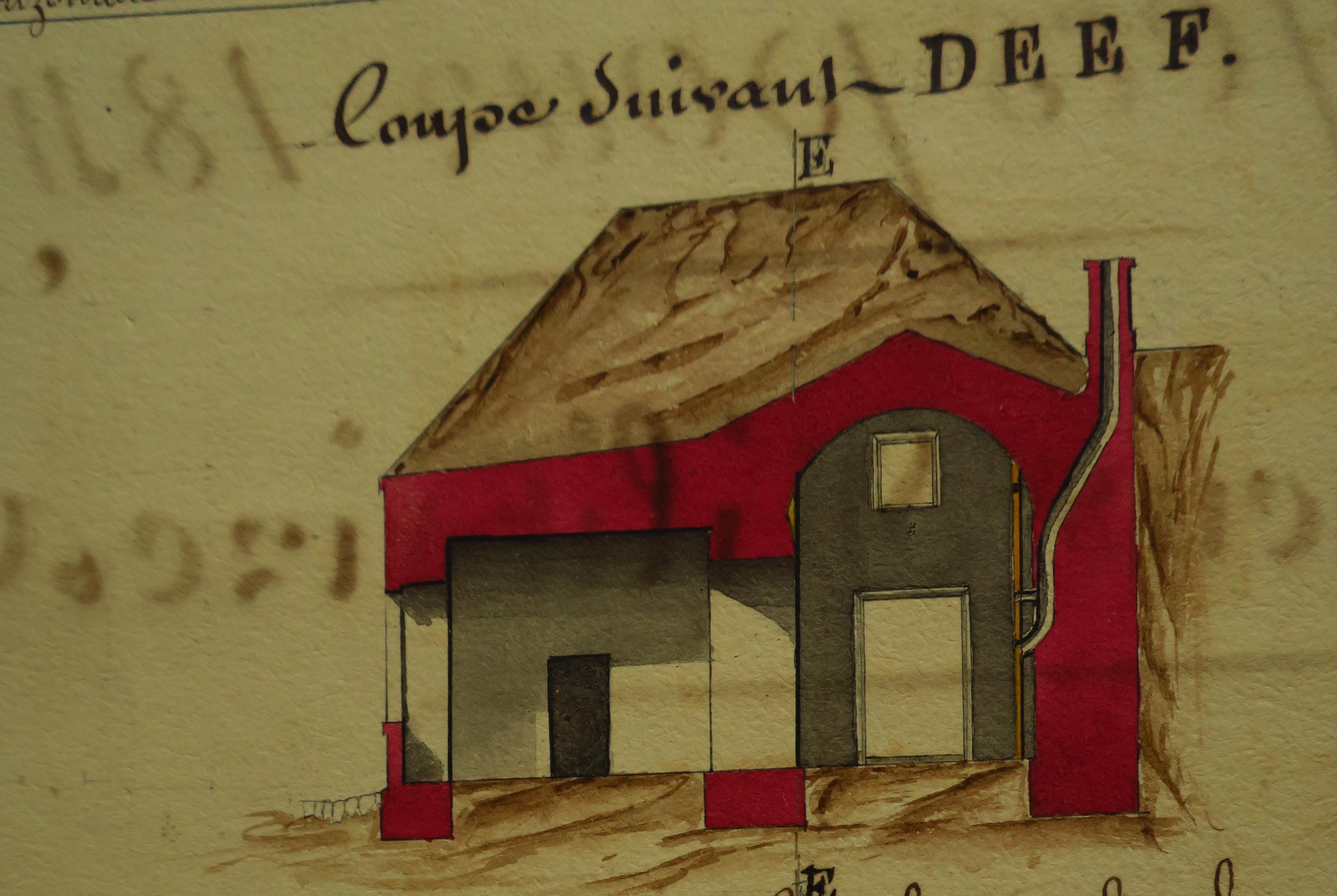 Service historique de la Défense, département Armée de Terre, Vincennes. Archives du Génie ; Article 8, Places françaises et d'Algérie : 1 VH 293, Place de Belle-Île-en-Mer, projets et dépenses annuels, 1848-1853. Direction du Génie de Nantes, Place de Belle-Ile, feuille n° 3 des projets pour 1849, caserne C, 25 mai 1849.