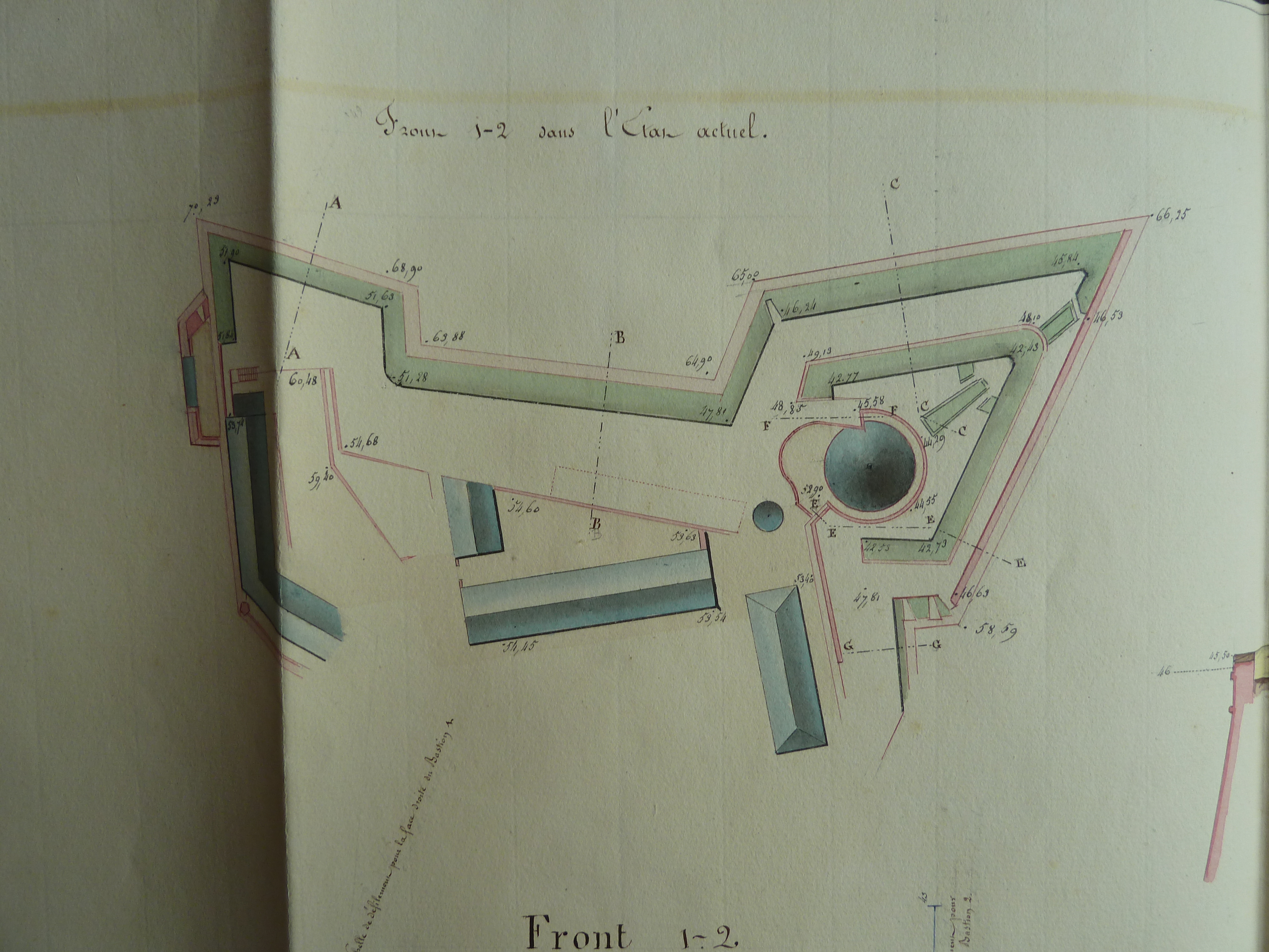 Service historique de la Défense, département Armée de Terre, Vincennes. Archives du Génie ; Article 8, Places françaises et d'Algérie : 1 VH 287, Place de Belle-Île-en-Mer, projets et dépenses annuels, 1817-1825. Direction du Génie de Port-Louis, Place de Belle-Ile-en-Mer, feuille n° 1 des projets pour 1824, projet général de rectification des fortifications de la citadelle, 15 novembre 1823.