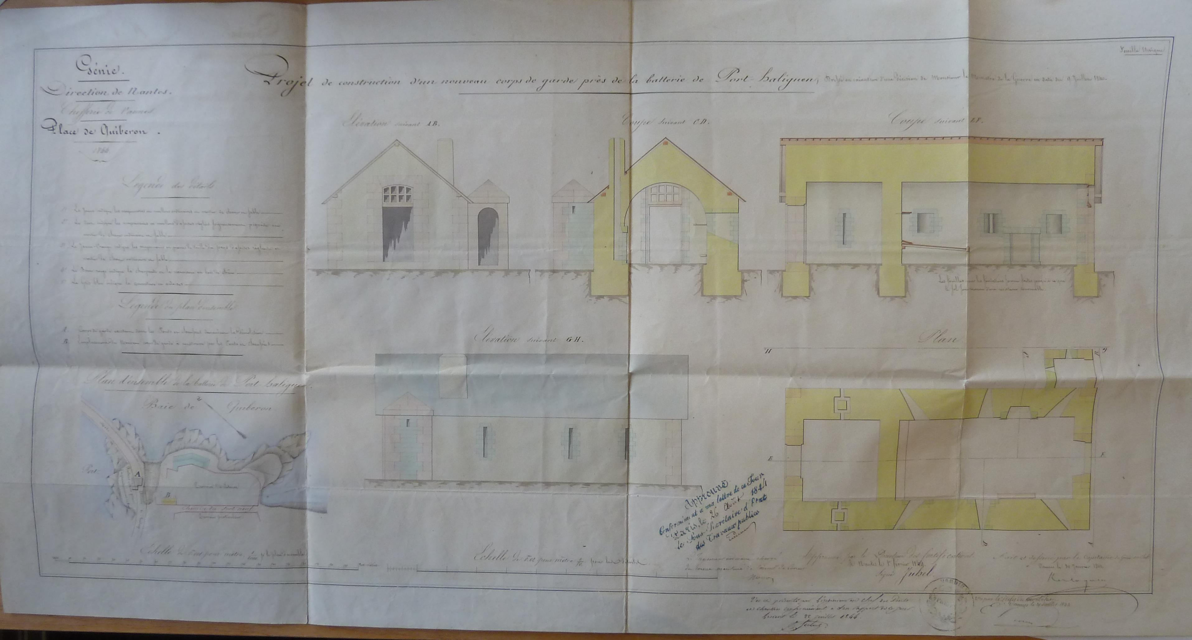 4 S 1290. Direction du Génie de Nantes, Place de Quiberon, Projet de construction d'un nouveau corps de garde près de la batterie de Port Haliguen, 30 janvier 1844.Immatriculation
