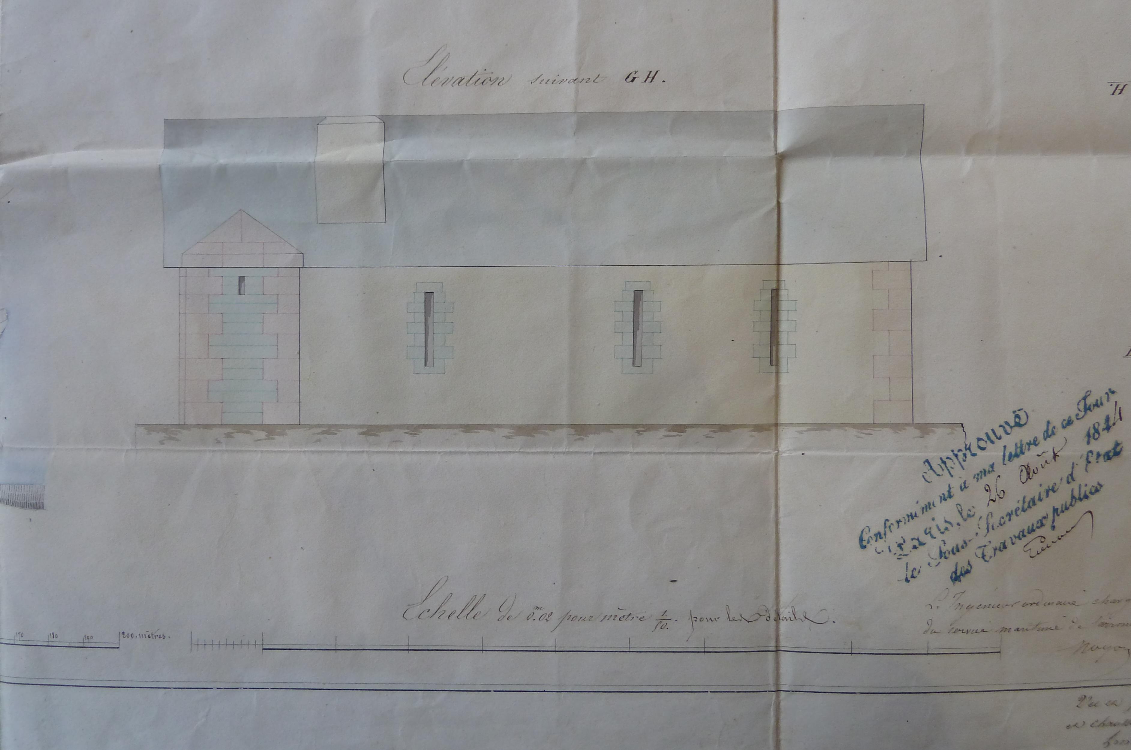 4 S 1290. Direction du Génie de Nantes, Place de Quiberon, Projet de construction d'un nouveau corps de garde près de la batterie de Port Haliguen, 30 janvier 1844.Immatriculation