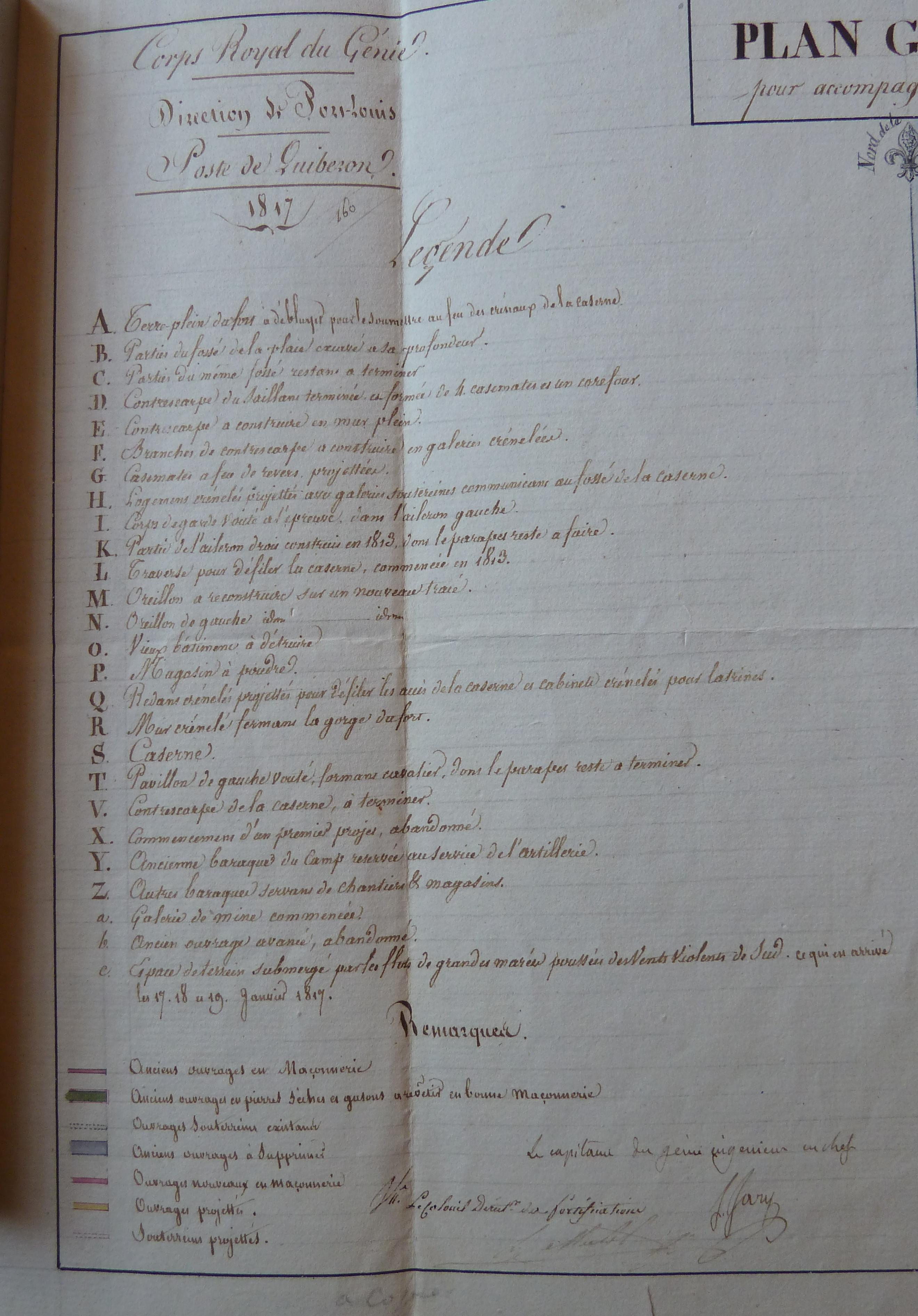 1 VH 1515. Direction du Génie de Port-Louis, Poste de Quiberon, plan général du fort Penthièvre et de son camp retranché, 1817.Immatriculation