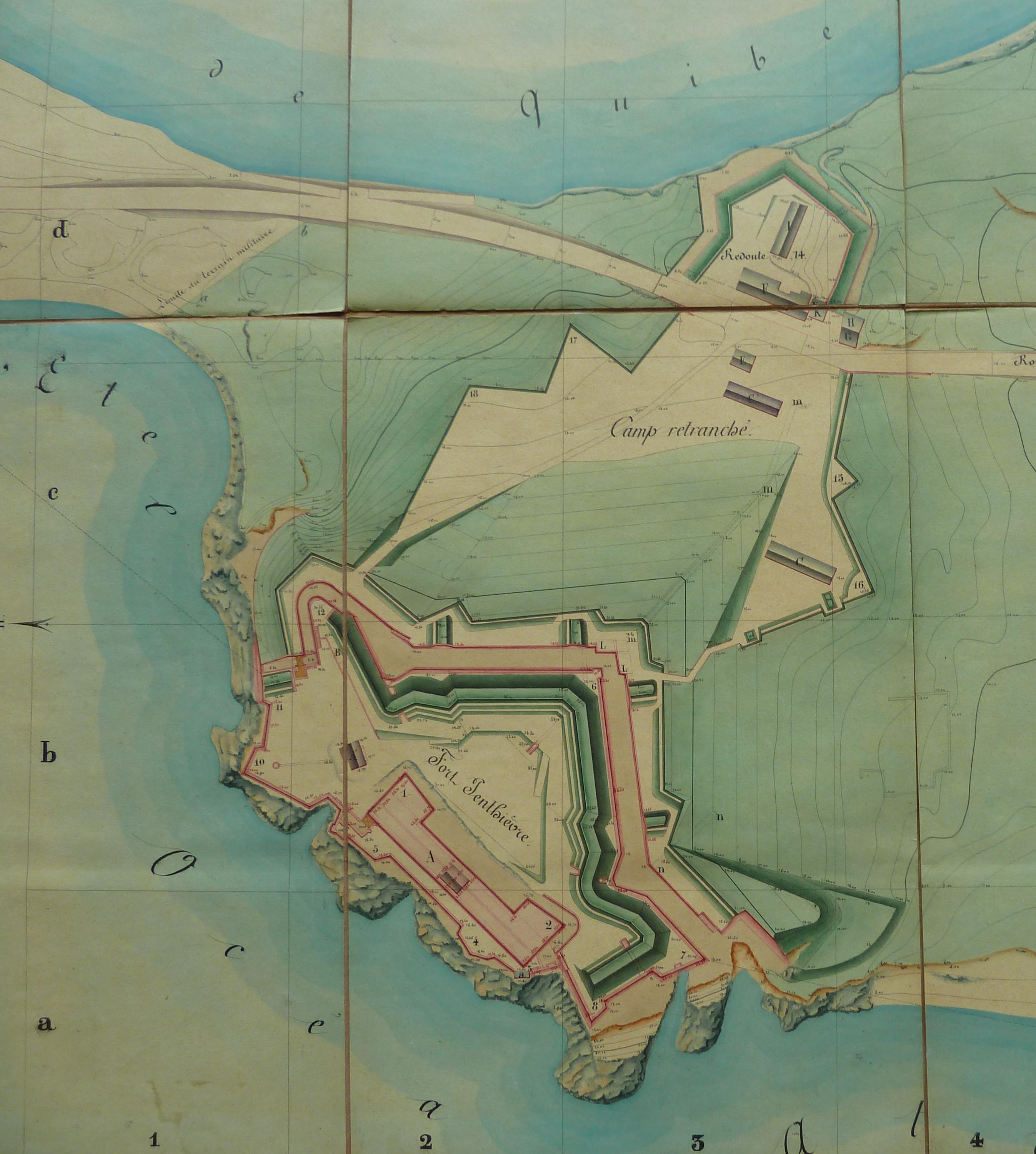 Service historique de la Défense, département Armée de Terre, Vincennes. Archives du Génie ; Article 8, Places françaises et d'Algérie : 1 VH 2069, Collections de plans, Quiberon à Rocroi. Plan de Quiberon, 1860.