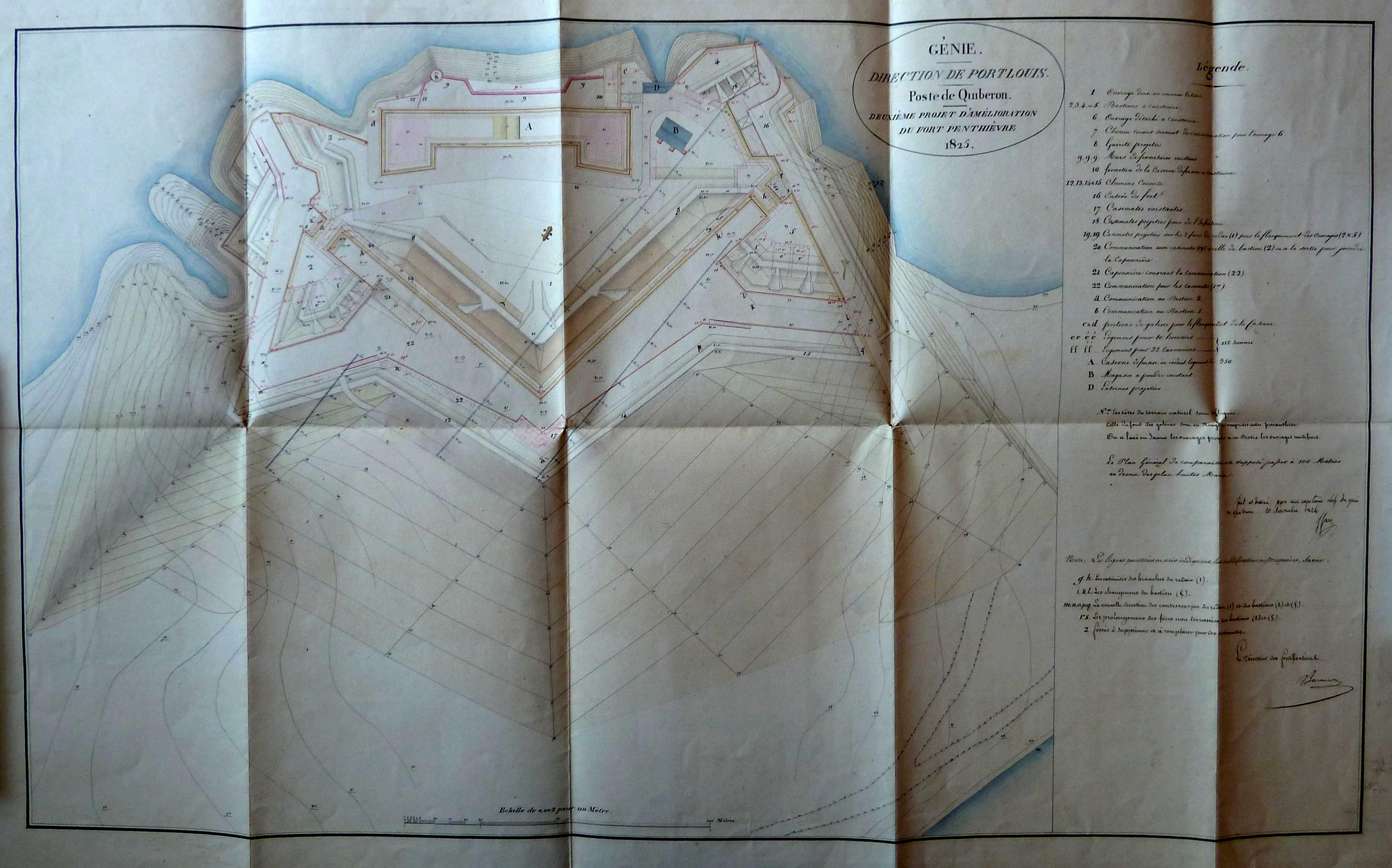 Service historique de la Défense, département Armée de Terre, Vincennes. Archives du Génie ; Article 8, Places françaises et d'Algérie : 1 VH 1516, Place de Quiberon, projets et dépenses annuels, 1823-1837. Direction du Génie de Port-Louis, Poste de Quiberon, deuxième projet d'amélioration du fort Penthièvre, 24 novembre 1824.
