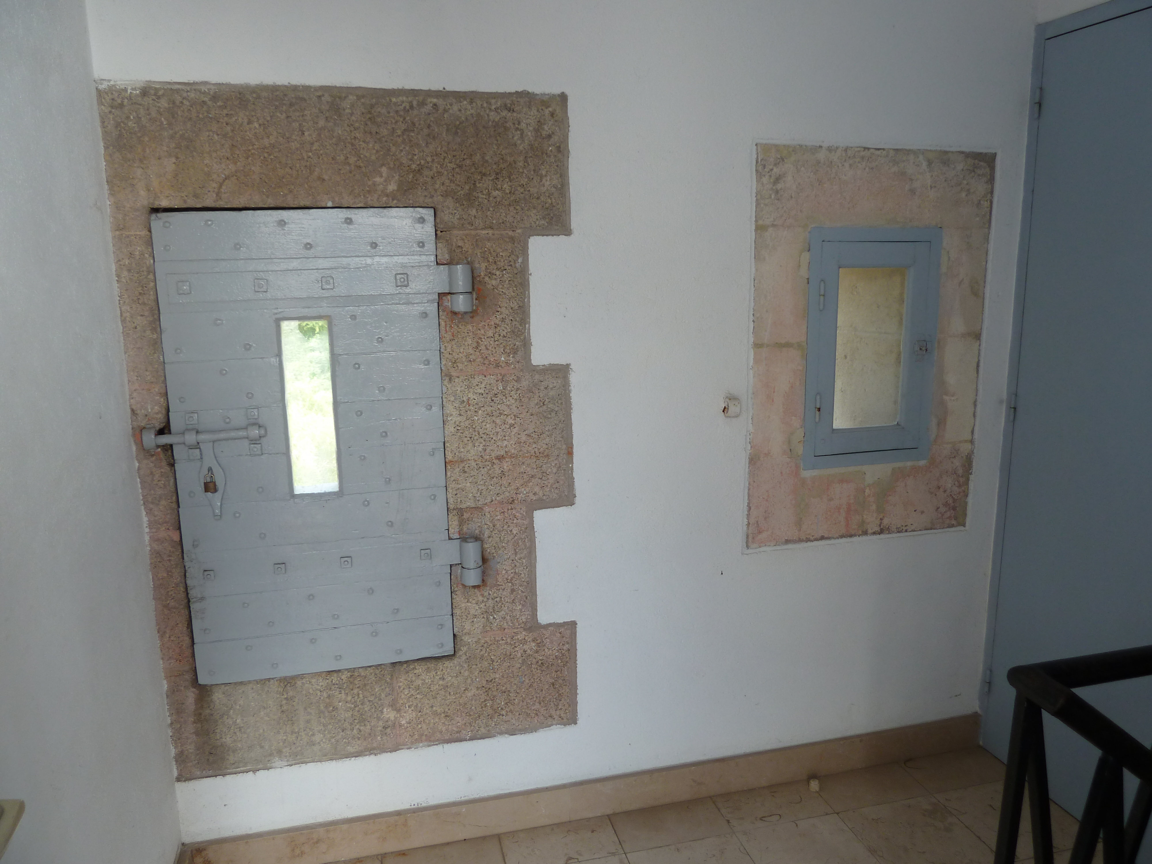 Locmaria, Port Maria, corps de garde crénelé, embrasure d'artillerie et créneau de tir de la terrasse.Immatriculation
