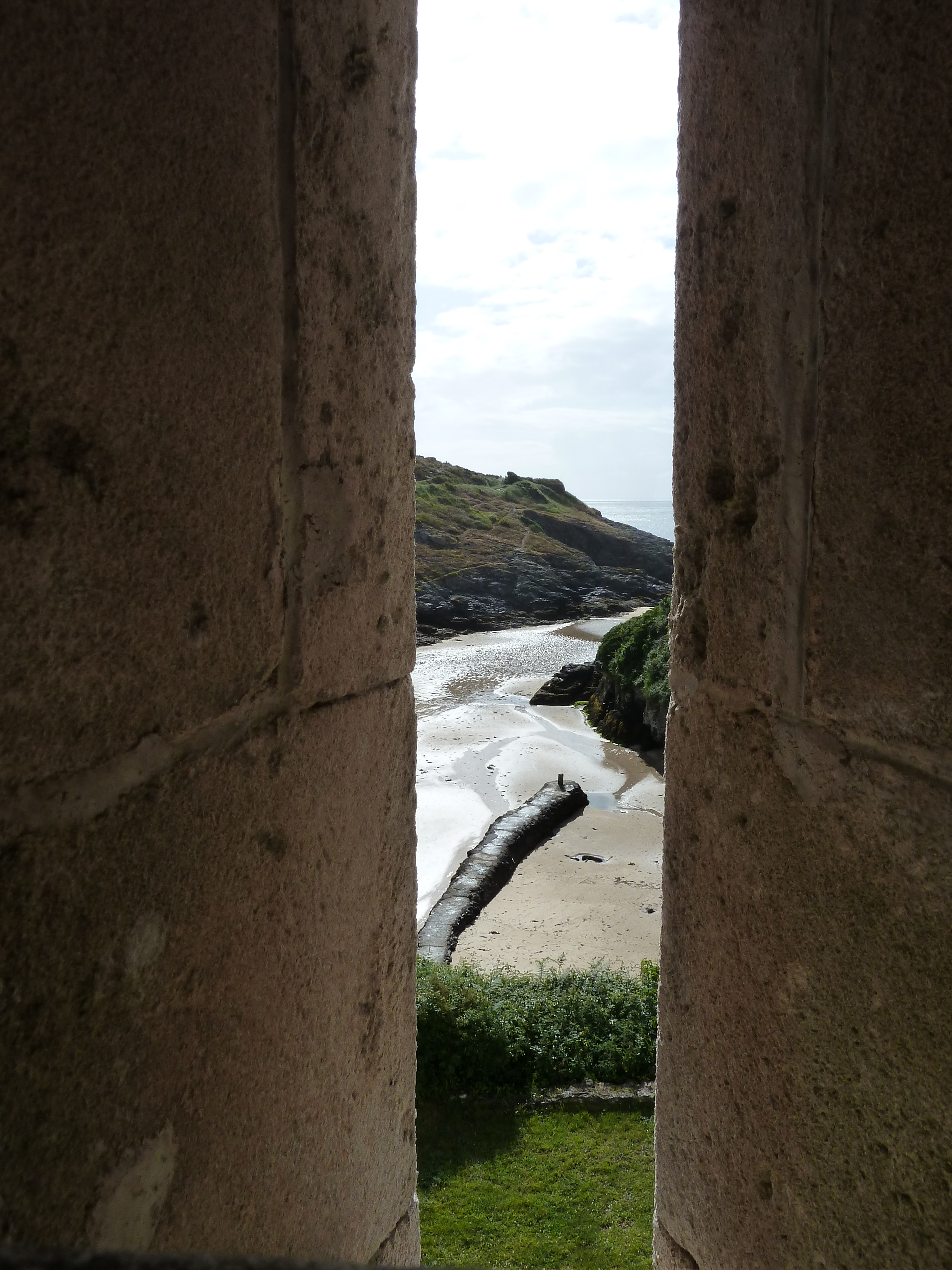 Locmaria, Port Maria, l'ancienne batterie vue par un créneau de tir de la terrasse du corps de garde crénelé.Immatriculation