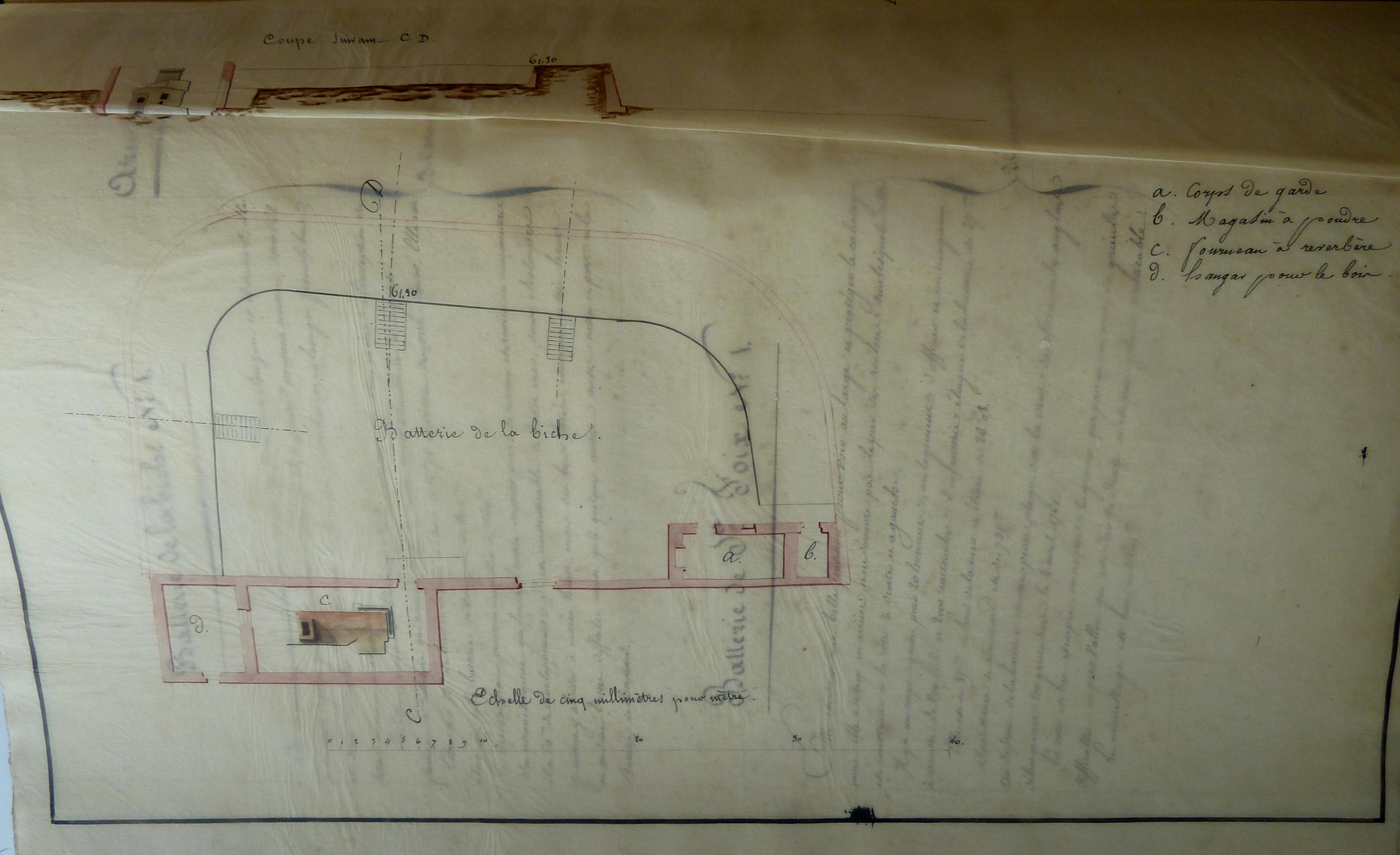 Archives départementales du Morbihan. Série Fi, Documents figurés ; 1 Fi 304, Notes topographiques, historiques et militaires sur chaque fort, redoute et batterie de la côte de Belle-Isle-en-mer, 1824.