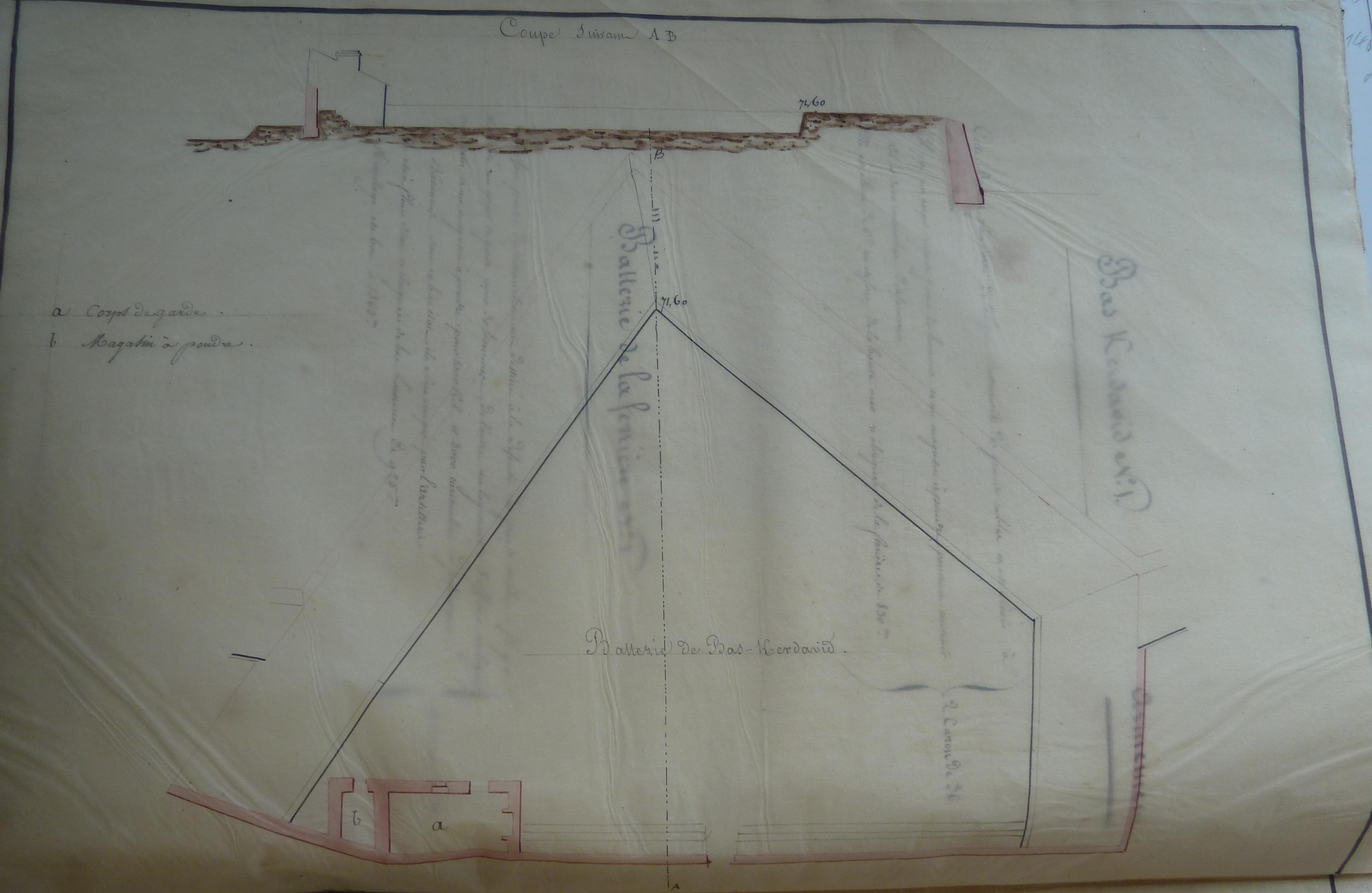 Archives départementales du Morbihan. Série Fi, Documents figurés ; 1 Fi 304, Notes topographiques, historiques et militaires sur chaque fort, redoute et batterie de la côte de Belle-Isle-en-mer, 1824.