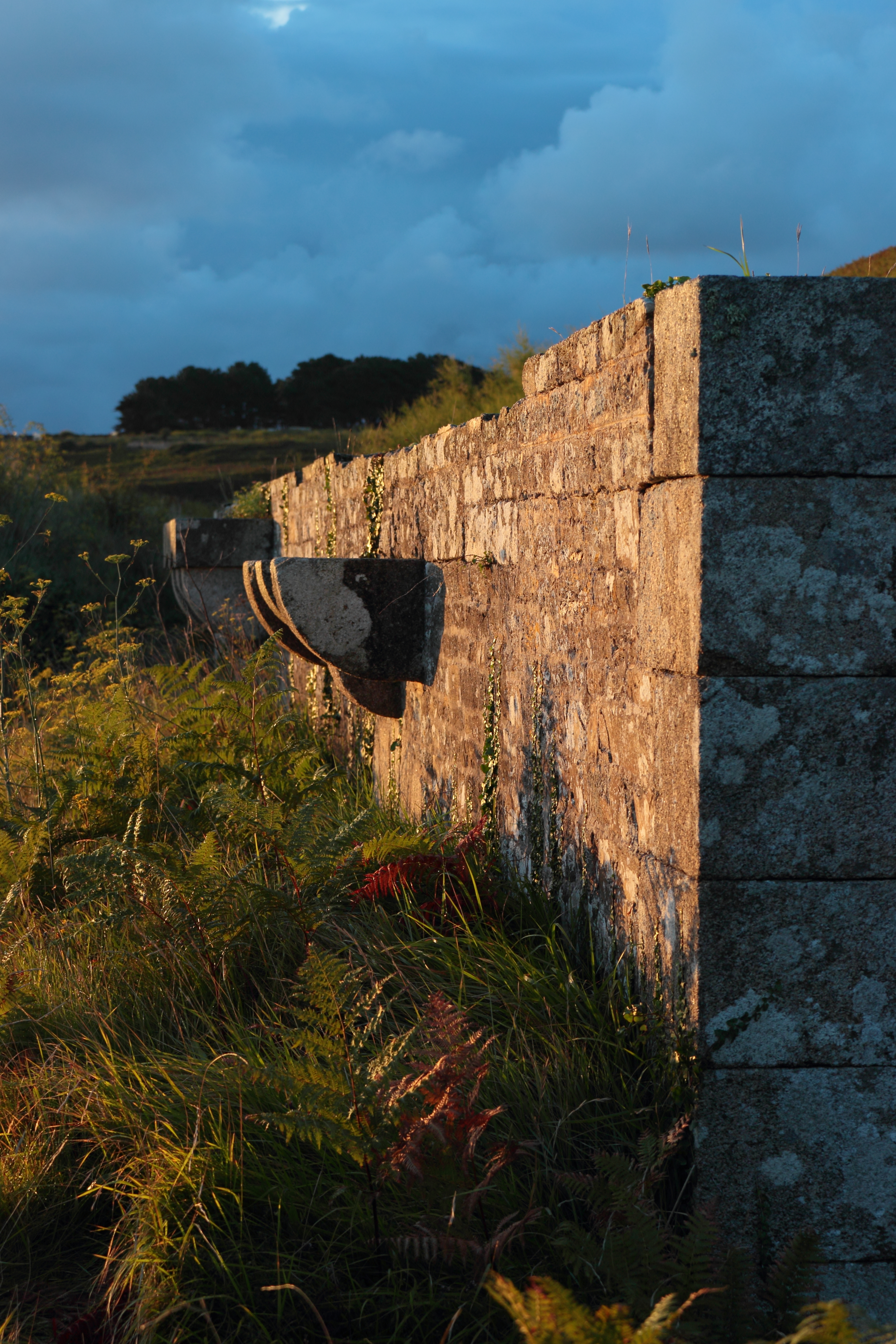 Locmaria, Grands Sables, batterie de La Ferrière, corps de garde crénelé, détail de la façade nord.Immatriculation
