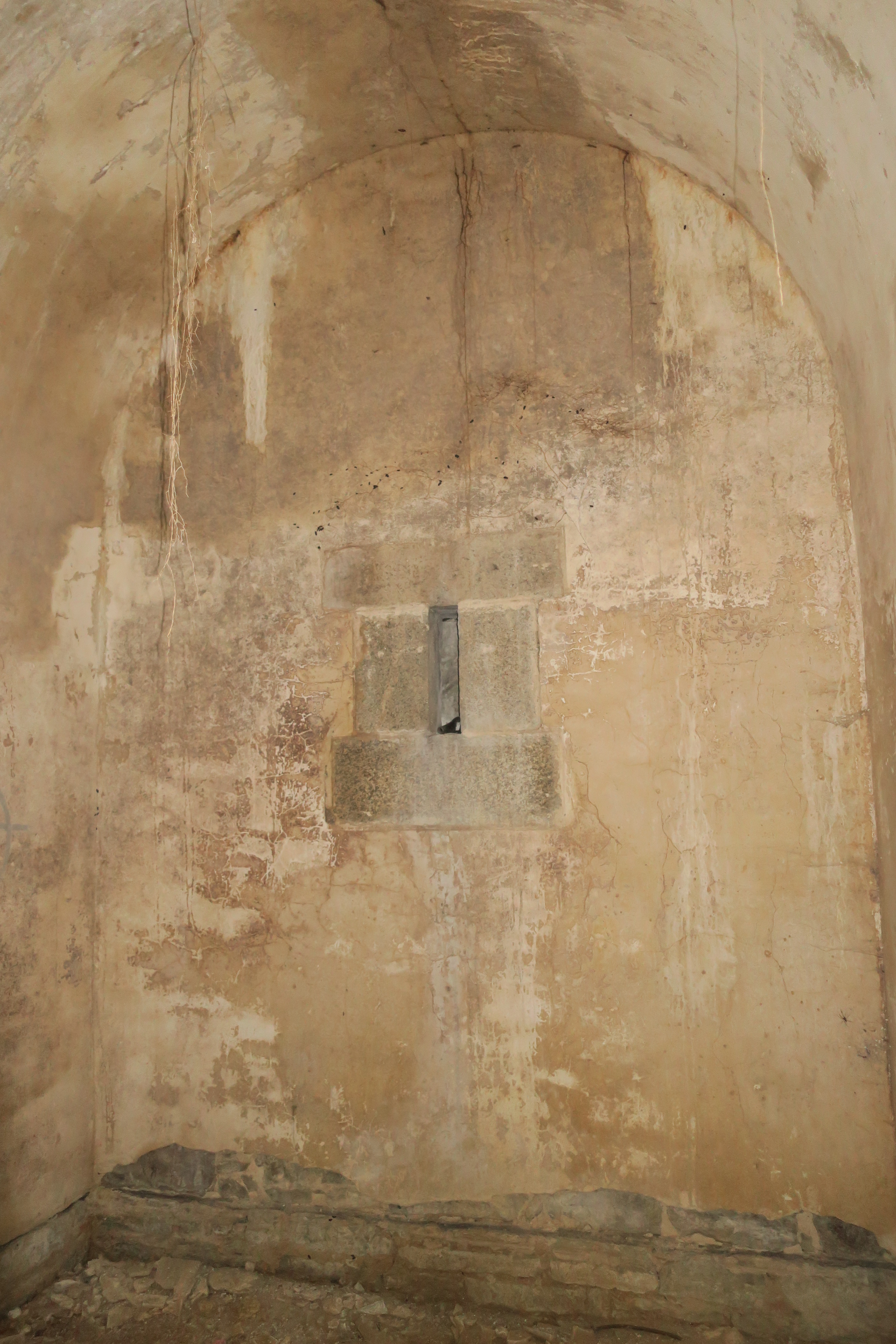 Locmaria, Grands Sables, batterie de La Ferrière, corps de garde crénelé, magasin à poudre.Immatriculation