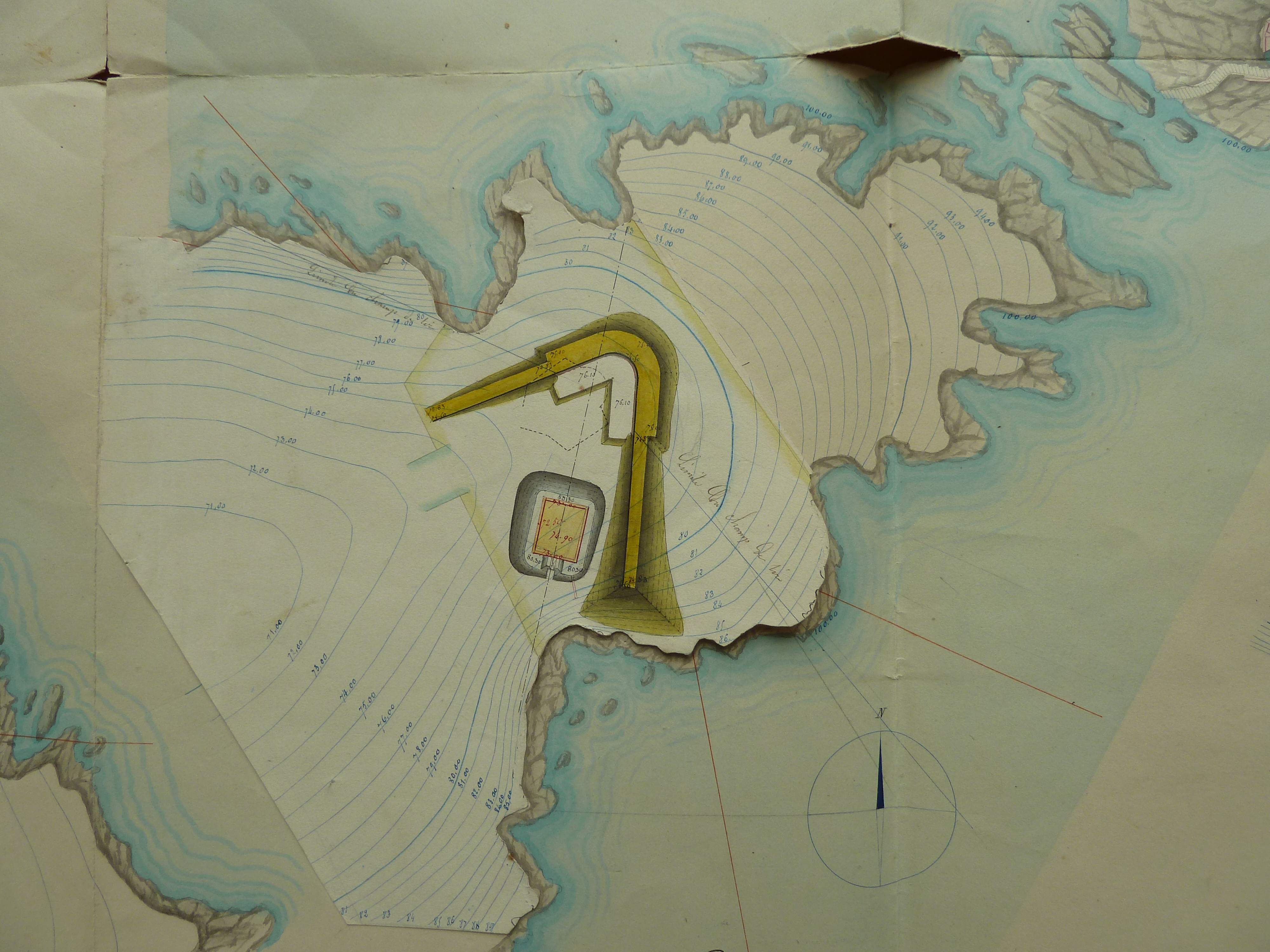 Service historique de la Défense, département Armée de Terre, Vincennes. Archives du Génie ; Article 8, Places françaises et d'Algérie : 1 VH 294, Place de Belle-Île-en-Mer, projets et dépenses annuels, 1854-1857. Direction du Génie de Brest, Place de Belle-Ile, feuille n° 12 des projets extraordinaires pour 1857, 19 février 1857 [papillote de correction du 18 mars 1857].