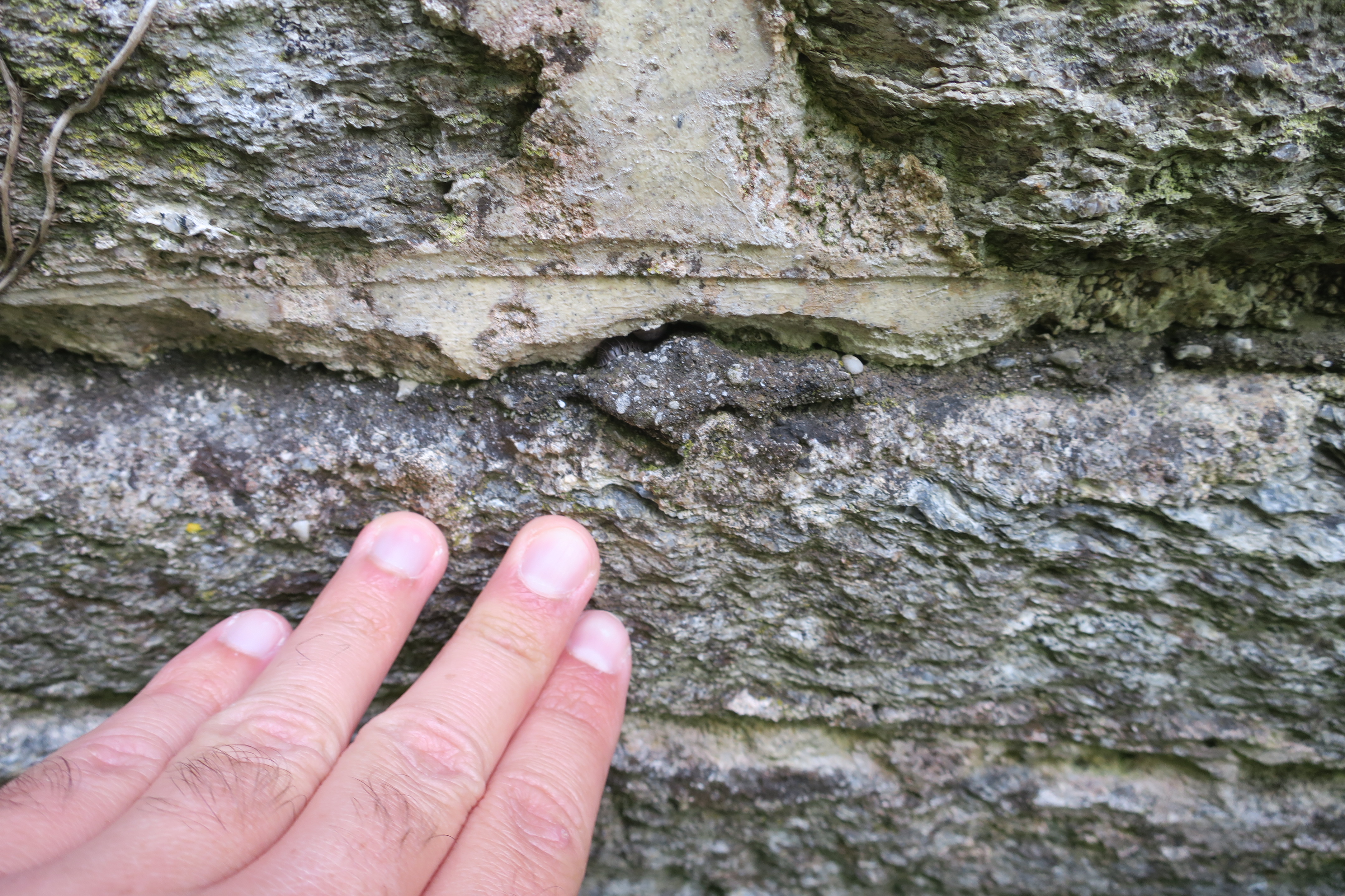 Le Palais, Port Larron, corps de garde crénelé, joint en bitume au bas des murs.Immatriculation