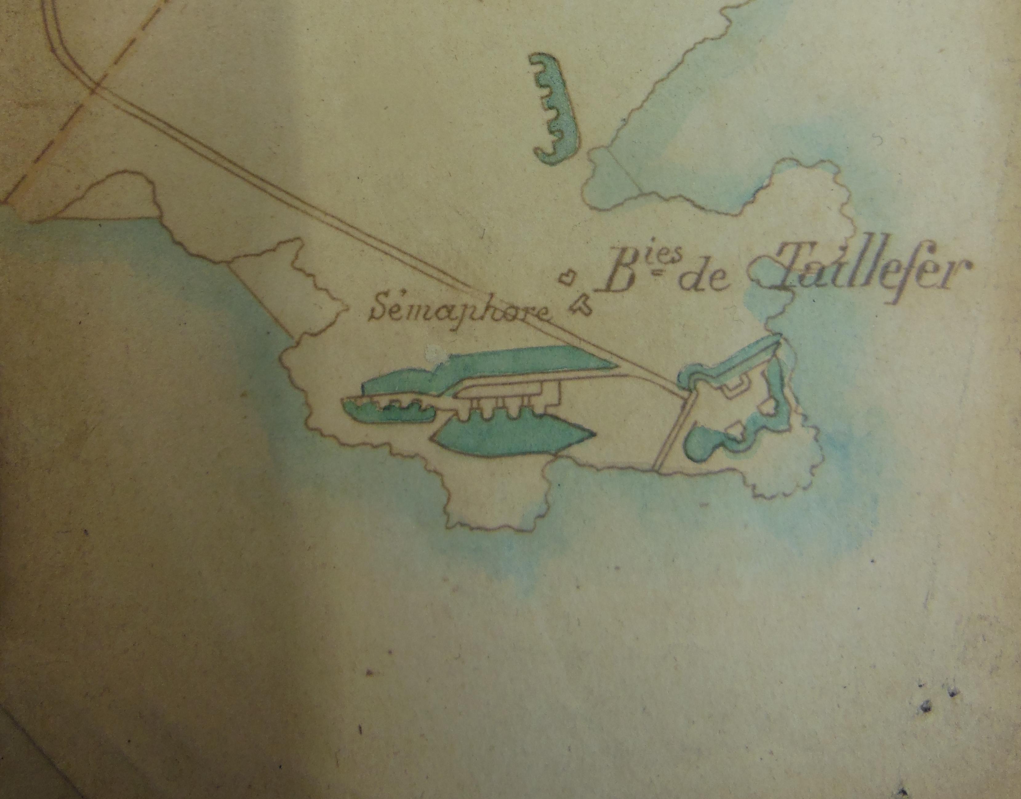 Service historique de la Défense, Département Marine, Lorient. Archives de la Place et du Génie de Belle-Île-en-Mer ; Sous-série 4 S2, archives du Génie de Belle-Île-en-Mer : 4 S2 22, Direction du Génie de Brest, Place de Belle-Ile, plan d'ensemble de la place et de la citadelle, sans date [fin 19e siècle].