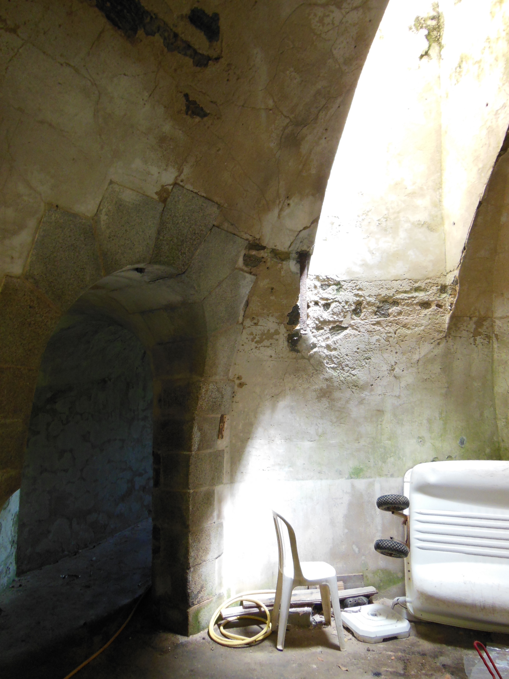 Le Palais, batterie du Gros Rocher, corps de garde crénelé, angle nord-est de la galerie voûtée d'enveloppe.Immatriculation
