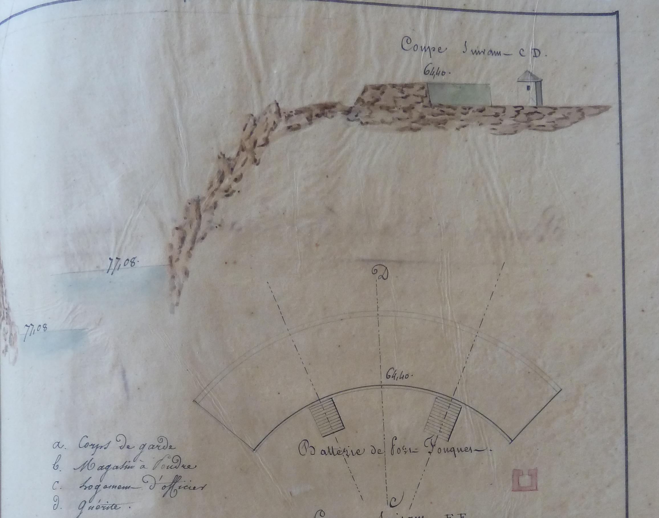 Archives départementales du Morbihan. Série Fi, Documents figurés ; 1 Fi 304, Notes topographiques, historiques et militaires sur chaque fort, redoute et batterie de la côte de Belle-Isle-en-mer, 1824.