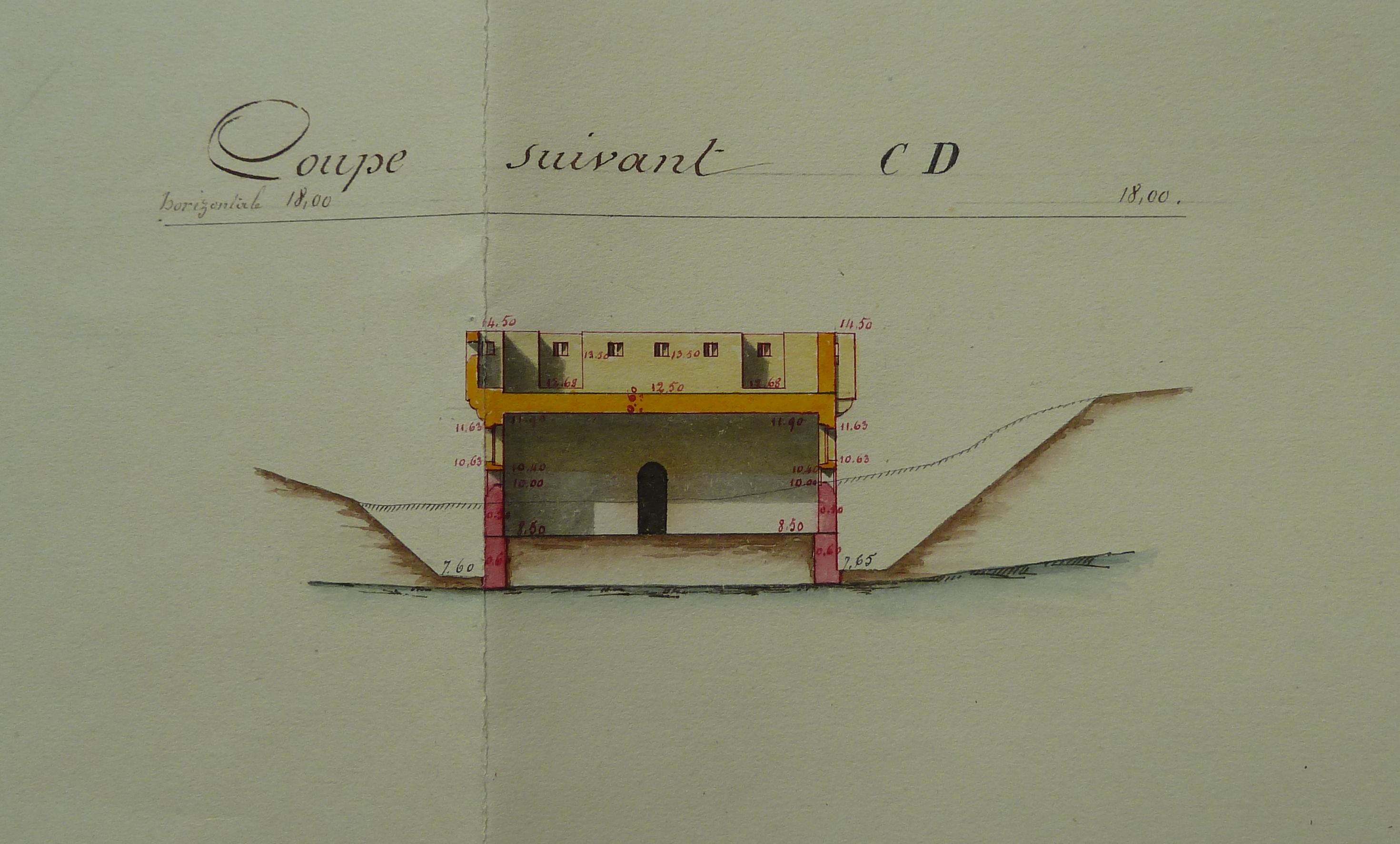 Service historique de la Défense, département Armée de Terre, Vincennes. Archives du Génie ; Article 8, Places françaises et d'Algérie : 1 VH 292, Place de Belle-Île-en-Mer, projets et dépenses annuels, 1847. Direction du Génie de Brest, Place de Belle-Ile, feuille n° 3 des projets extraordinaires pour 1860-1861, postes garde-côtes du Port Fouquet et de la pointe aux Poulains, 20 novembre 1859.