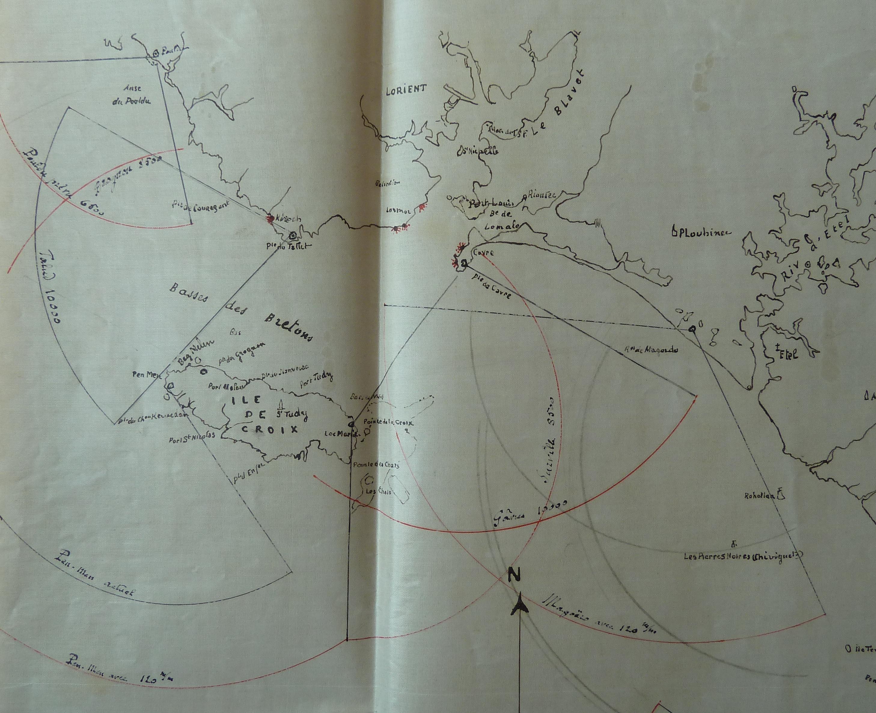 Service historique de la Défense, Département Marine, Vincennes. Archives de la Première Guerre mondiale ; Sous-série SS EE, Etat-major général, 5e section (défense du littoral) : SS EE 22, défense du littoral du 3e arrondissement maritime. Cartes des postes de défense (PDCSM) de Lorient, 1918.
