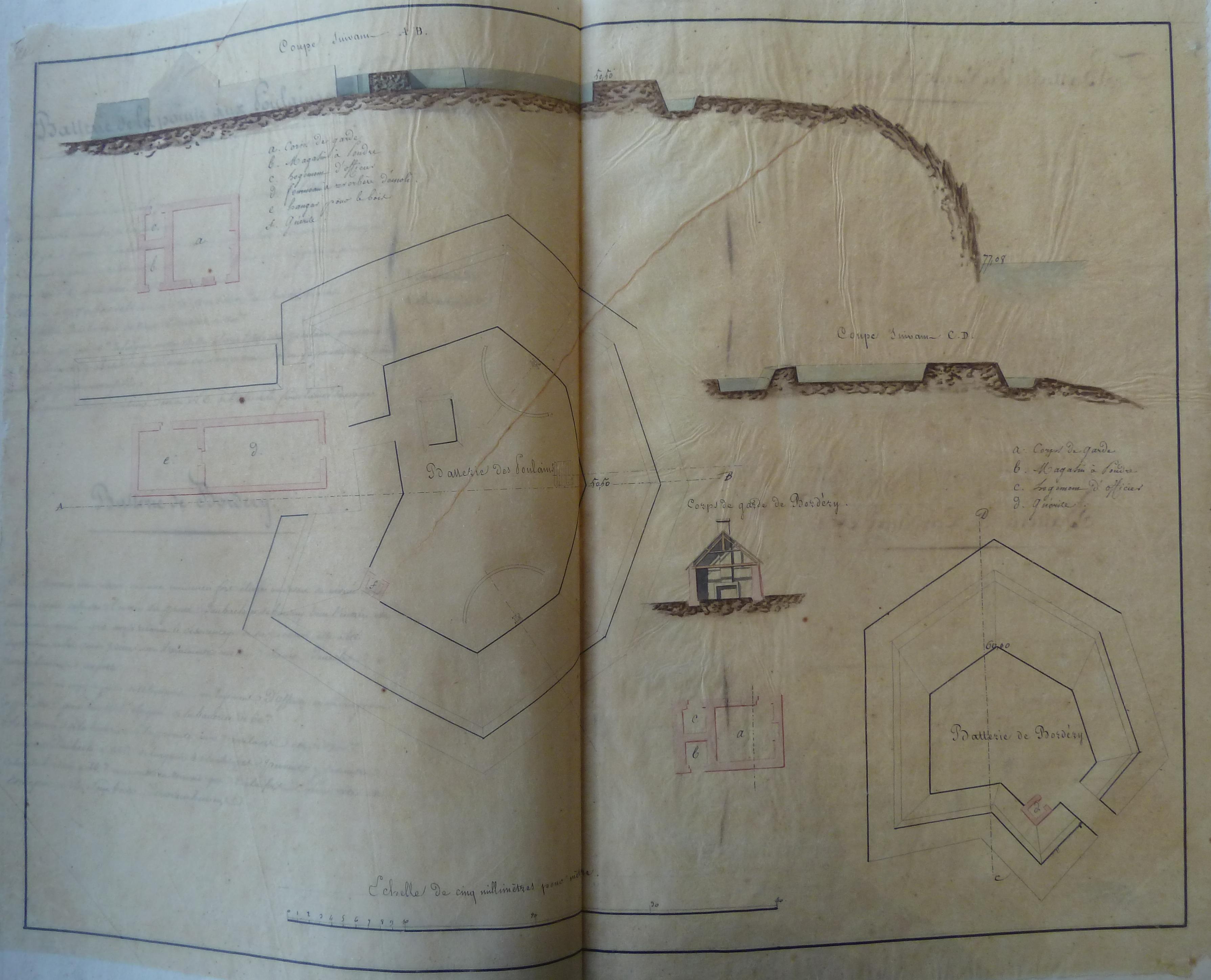 Archives départementales du Morbihan. Série Fi, Documents figurés ; 1 Fi 304, Notes topographiques, historiques et militaires sur chaque fort, redoute et batterie de la côte de Belle-Isle-en-mer, 1824.