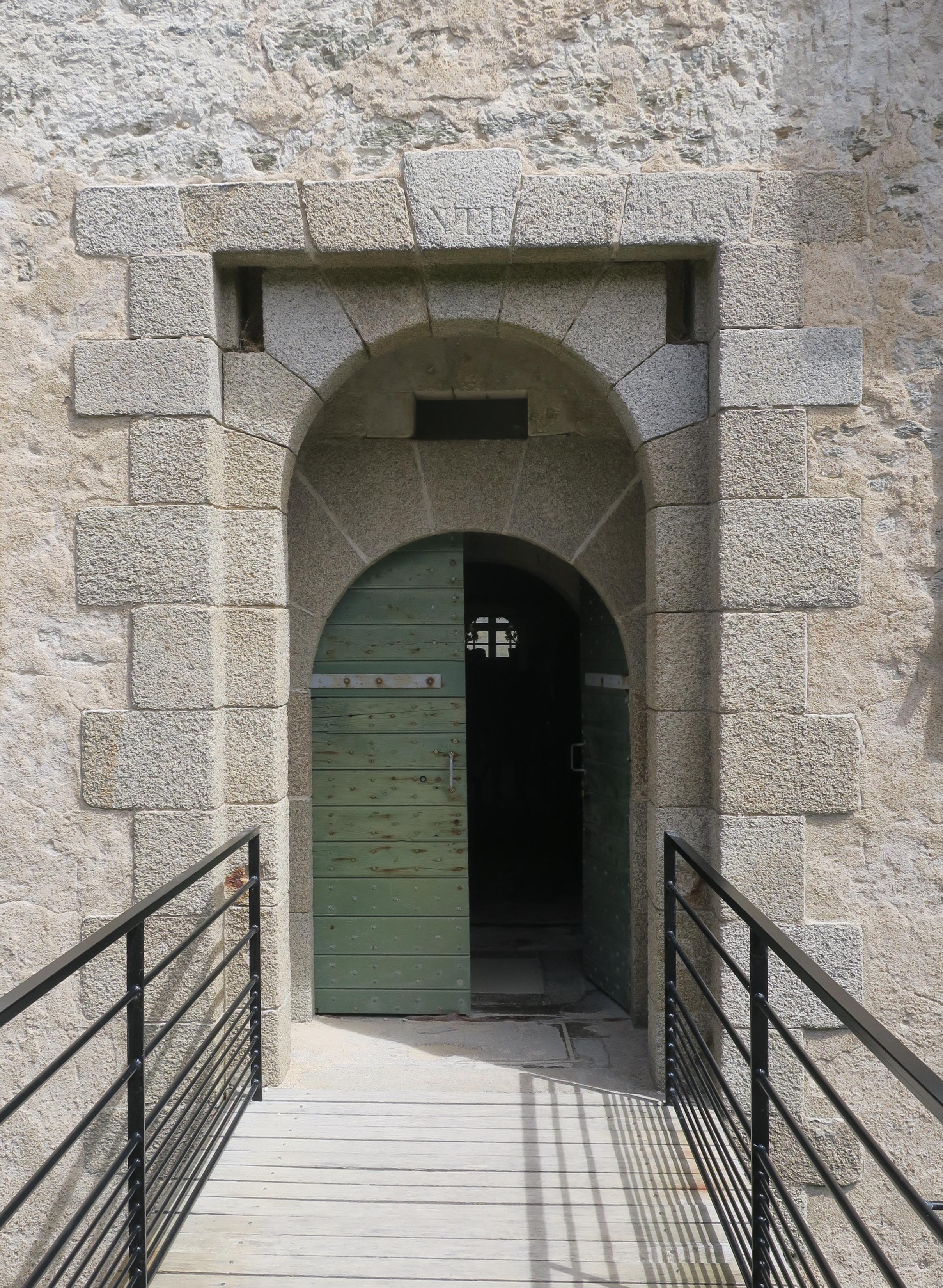 Sauzon, pointe des Poulains, corps de garde crénelé dit Fort Sarah Bernhardt, porte.Immatriculation