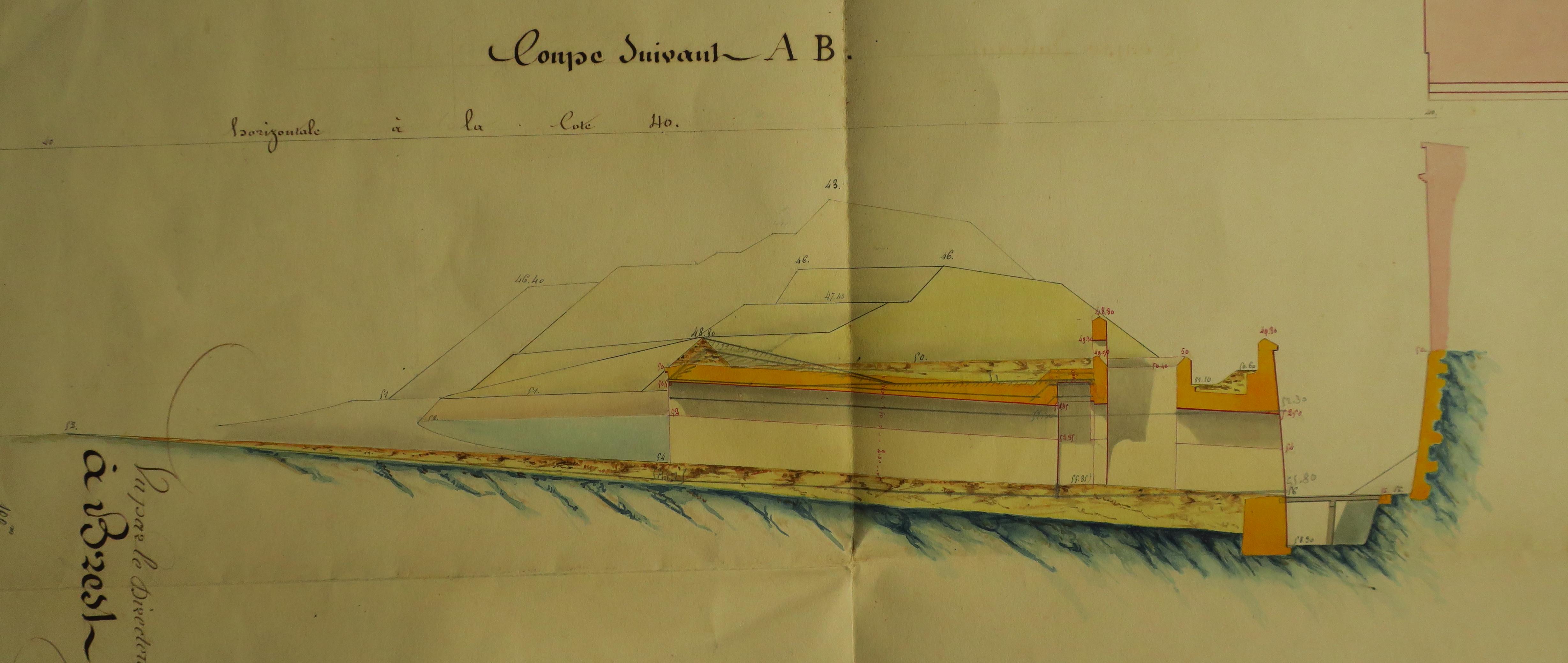 Service historique de la Défense, département Armée de Terre, Vincennes. Archives du Génie ; Article 8, Places françaises et d'Algérie : 1 VH 293, Place de Belle-Île-en-Mer, projets et dépenses annuels, 1848-1853. Direction du Génie de Nantes, Place de Belle-Ile, feuille n° 1 des projets pour 1849, 25 mai 1849.