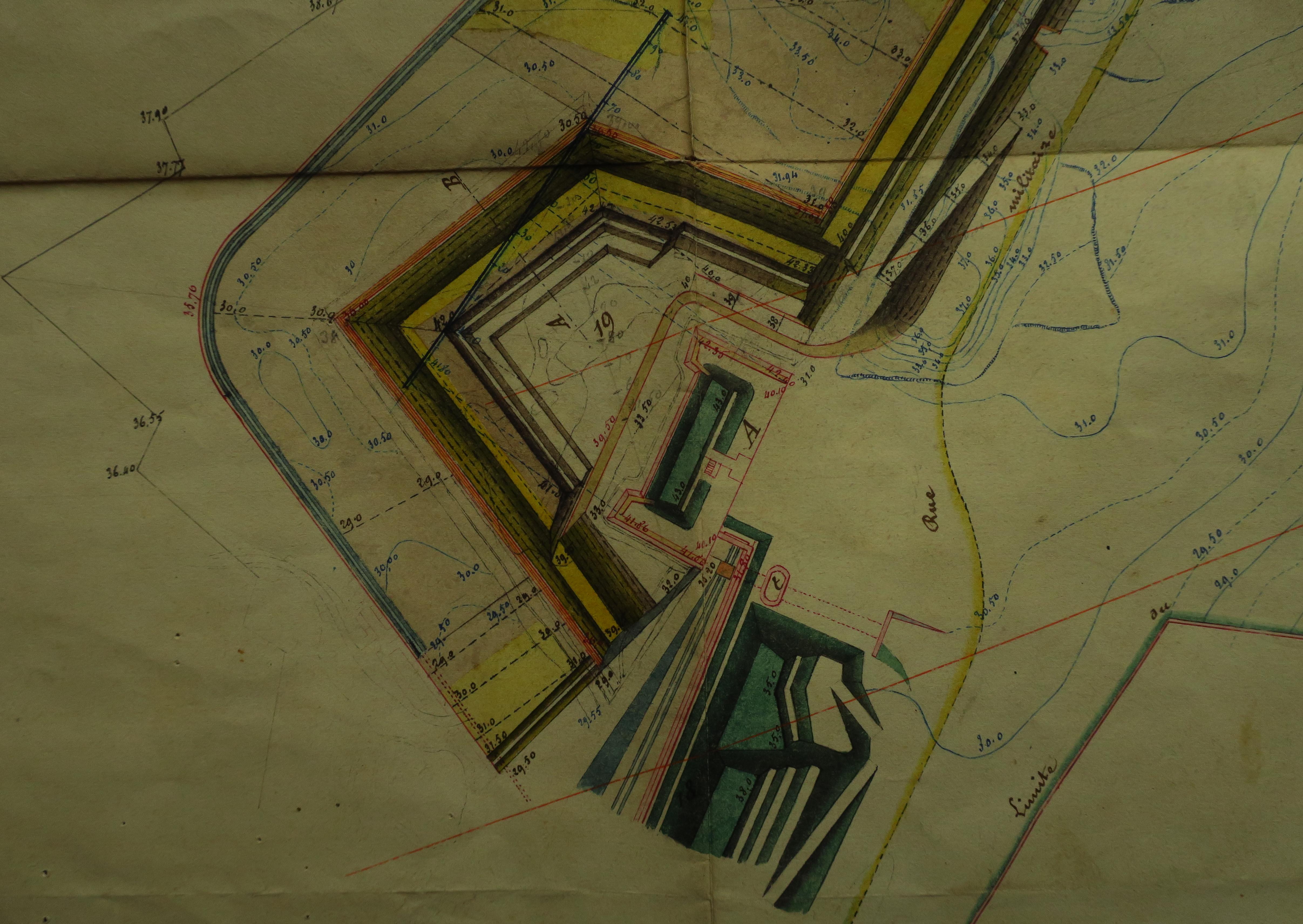 Service historique de la Défense, département Armée de Terre, Vincennes. Archives du Génie ; Article 8, Places françaises et d'Algérie : 1 VH 296, Place de Belle-Île-en-Mer, projets et dépenses annuels, 1860-1861. Direction du Génie de Brest, Place de Belle-Ile, feuille n° 12 des projets pour 1860-1861, 24 octobre 1860.
