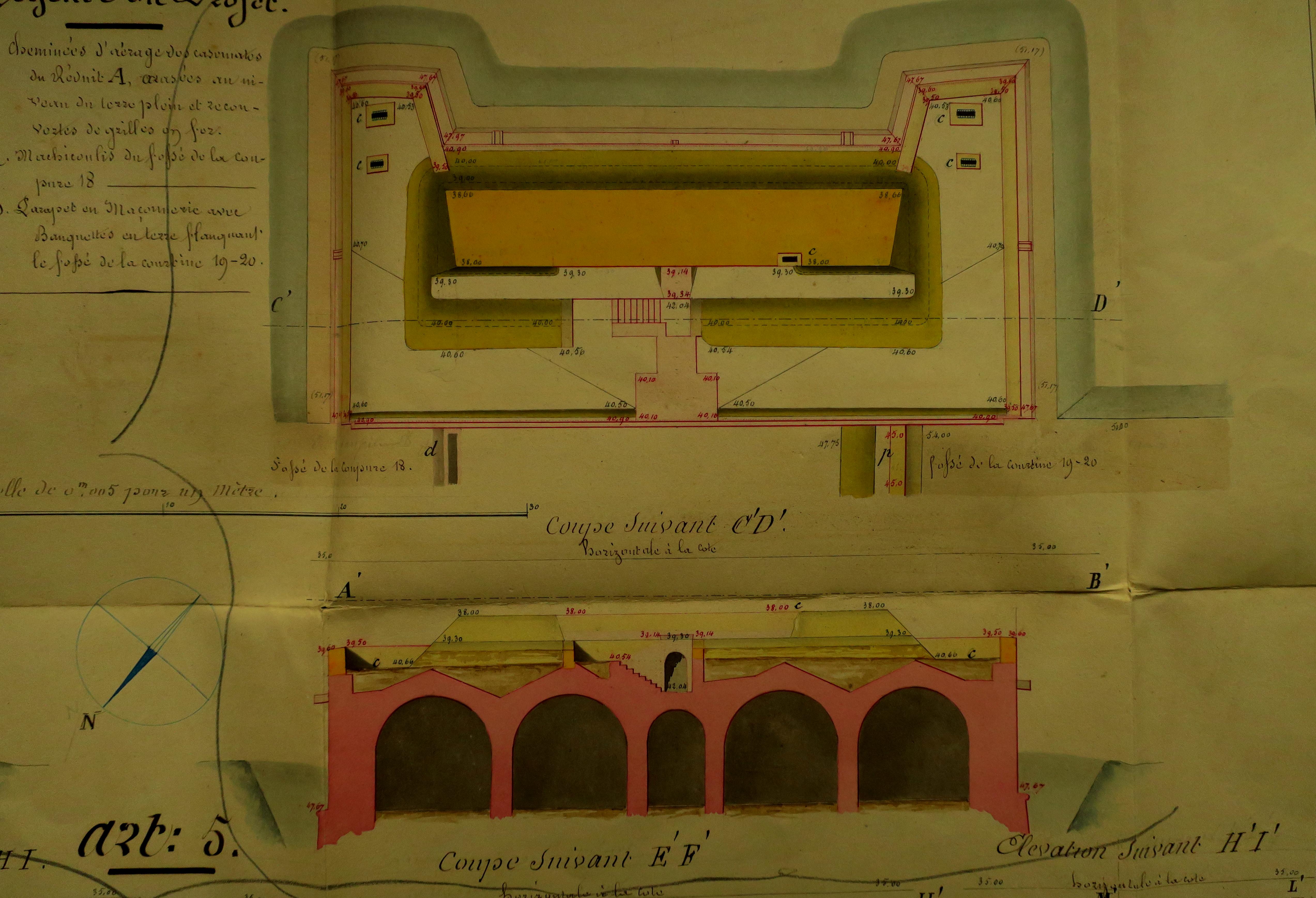 Service historique de la Défense, département Armée de Terre, Vincennes. Archives du Génie ; Article 8, Places françaises et d'Algérie : 1 VH 294, Place de Belle-Île-en-Mer, projets et dépenses annuels, 1854-1857. Direction du Génie de Brest, Place de Belle-Ile, feuille n° 3 des projets pour 1856-1857, 25 novembre 1855.