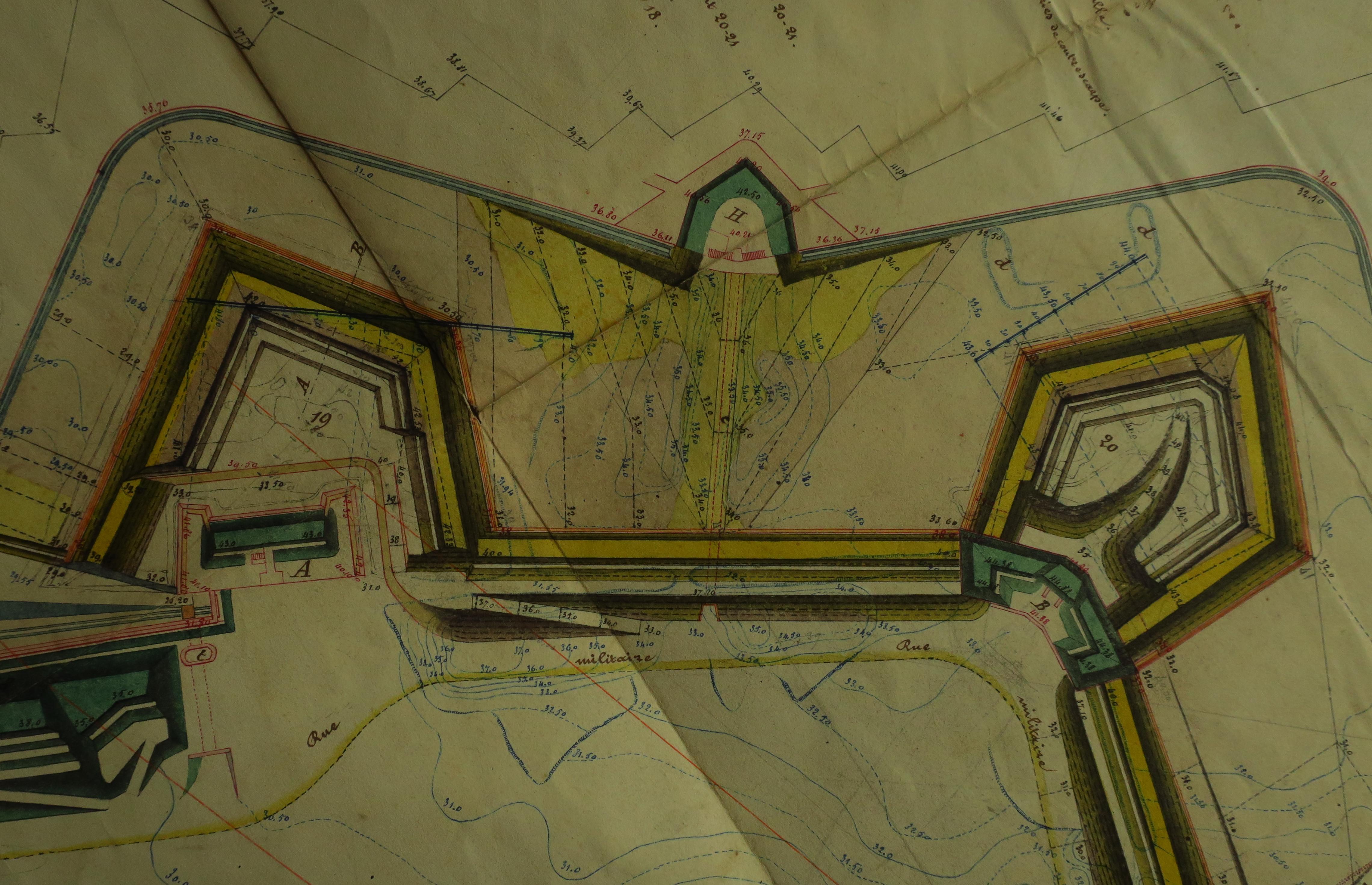 Service historique de la Défense, département Armée de Terre, Vincennes. Archives du Génie ; Article 8, Places françaises et d'Algérie : 1 VH 296, Place de Belle-Île-en-Mer, projets et dépenses annuels, 1860-1861. Direction du Génie de Brest, Place de Belle-Ile, feuille n° 12 des projets pour 1860-1861, 24 octobre 1860.