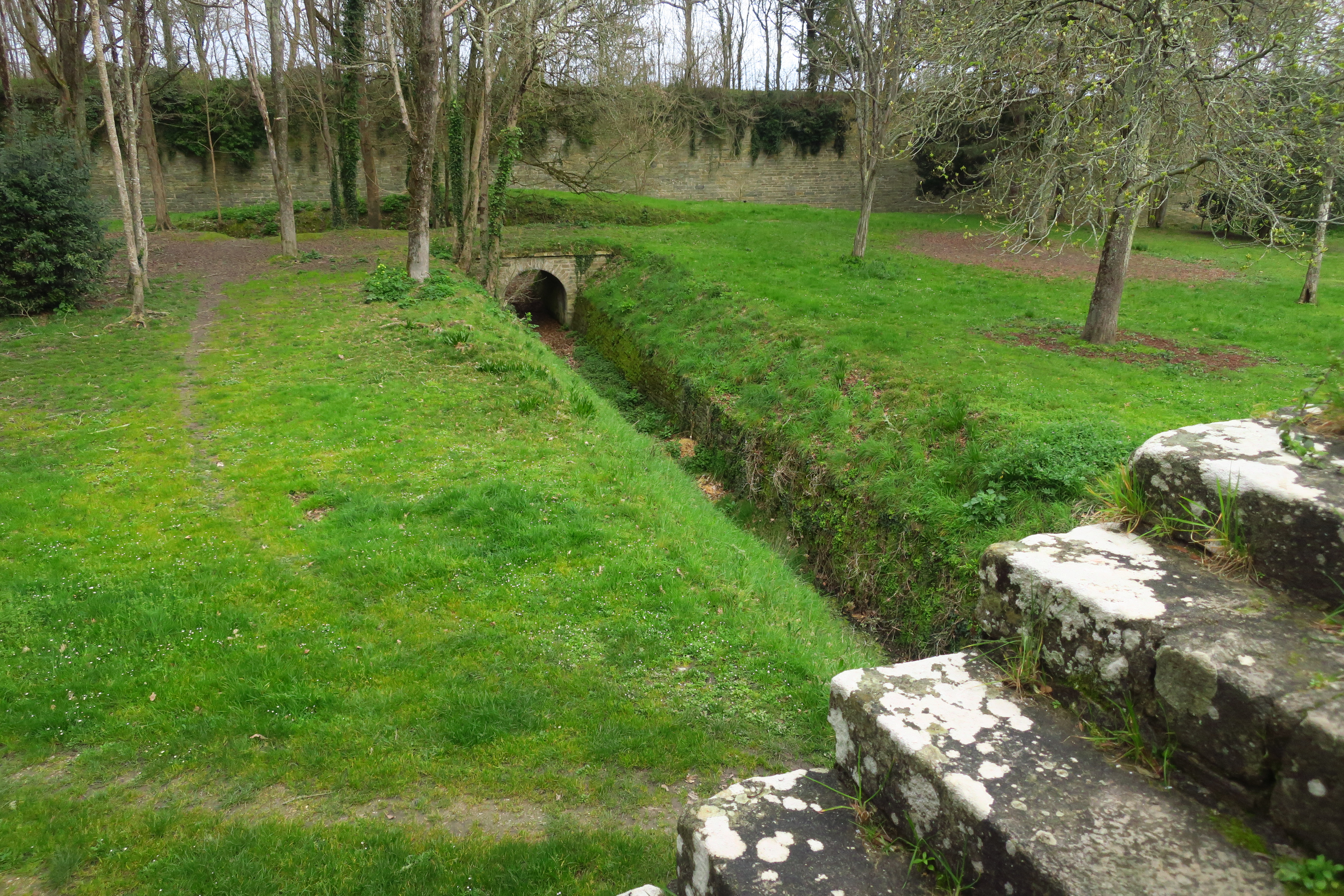 Le Palais, enceinte urbaine, courtine 19-20, escarpe, tenaille, place d'armes et caponnière vues depuis le réduit H.Immatriculation