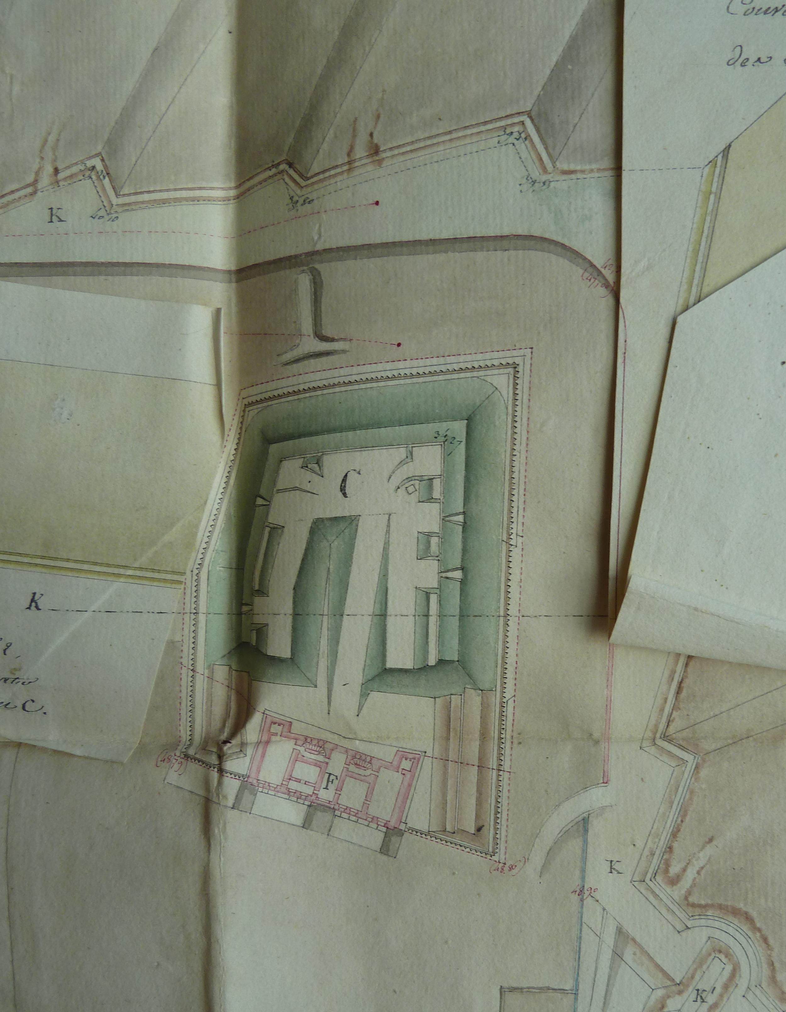 Service historique de la Défense, département Armée de Terre, Vincennes. Archives du Génie ; Article 8, Places françaises et d'Algérie : 1 VH 286, Place de Belle-Île-en-Mer, projets et dépenses annuels, 1807-1816. Direction du Génie de Port-Louis, Place de Belle-Ile-en-Mer, plan des ouvrages au sud de la citadelle destiné à faire connaître la situation, à la fin de 1813, des travaux extraordinaires.