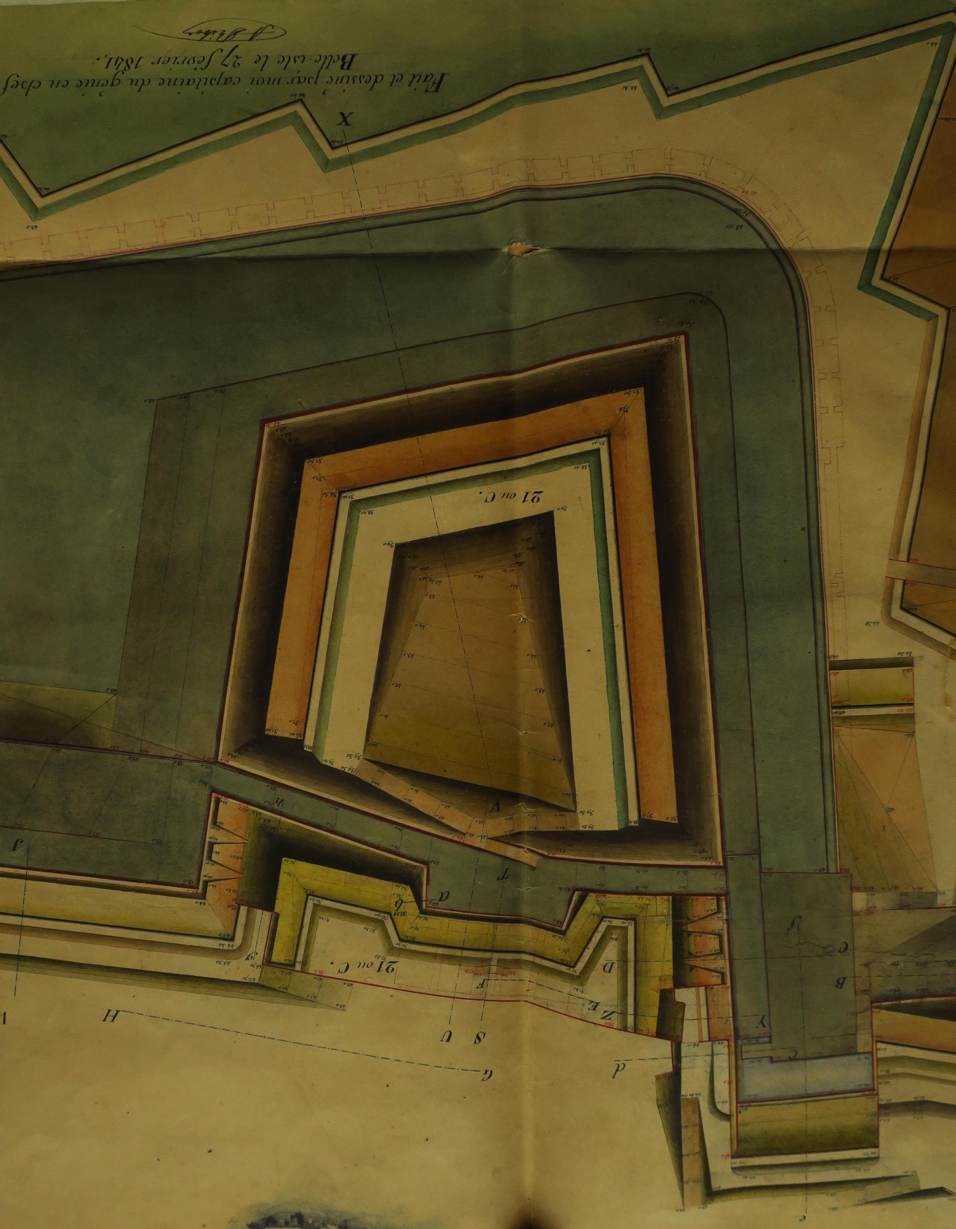 Service historique de la Défense, département Armée de Terre, Vincennes. Archives du Génie ; Article 8, Places françaises et d'Algérie : 1 VH 290, Place de Belle-Île-en-Mer, projets et dépenses annuels, 1837-1842. Direction du Génie de Nantes, Place de Belle-Ile, feuille n° 5 des projets pour 1841, achèvement de l'enceinte de Palais, 27 février 1841.