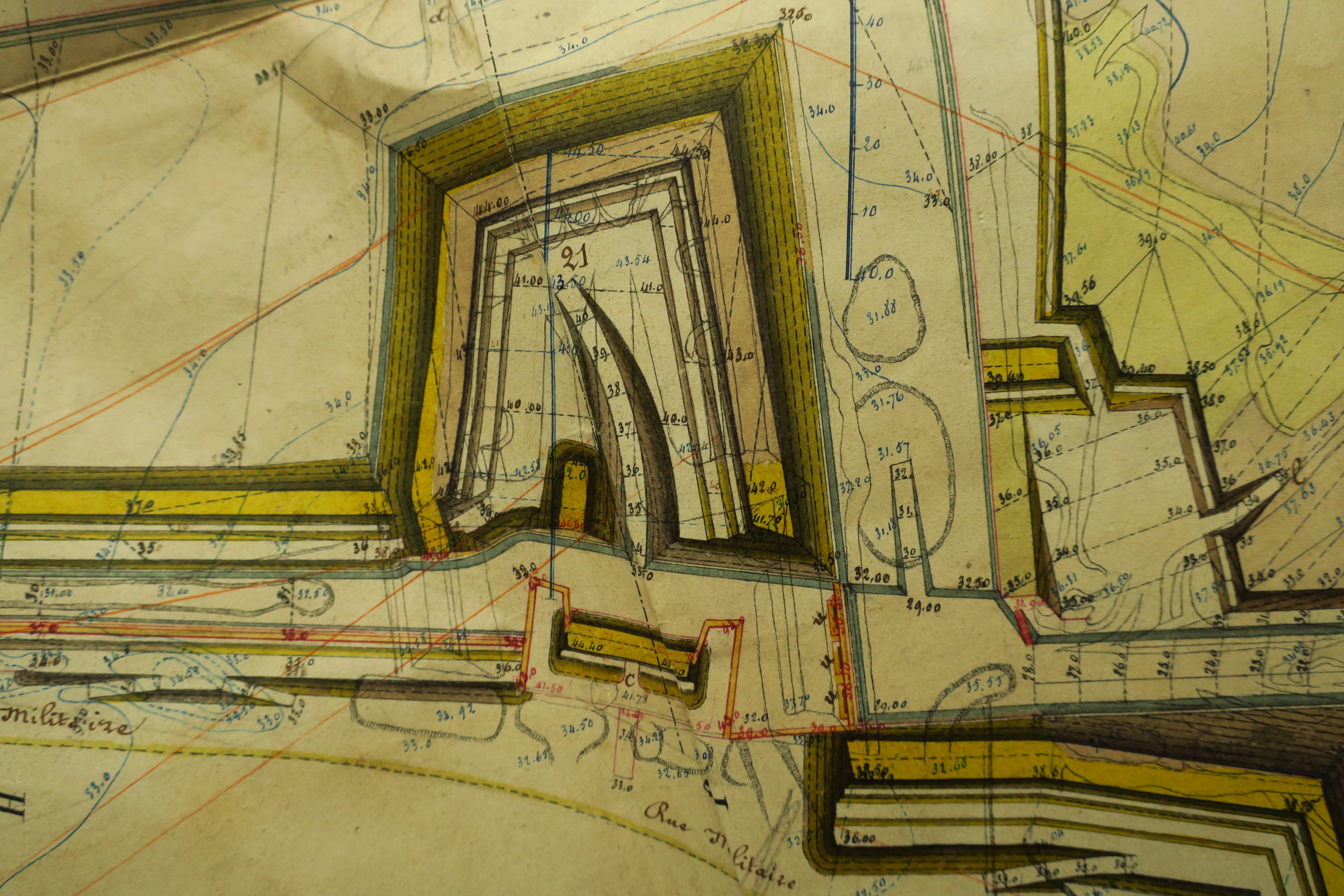 Service historique de la Défense, département Armée de Terre, Vincennes. Archives du Génie ; Article 8, Places françaises et d'Algérie : 1 VH 296, Place de Belle-Île-en-Mer, projets et dépenses annuels, 1860-1861. Direction du Génie de Brest, Place de Belle-Ile, feuille n° 8 des projets pour 1860-1861, 14 juillet 1860.