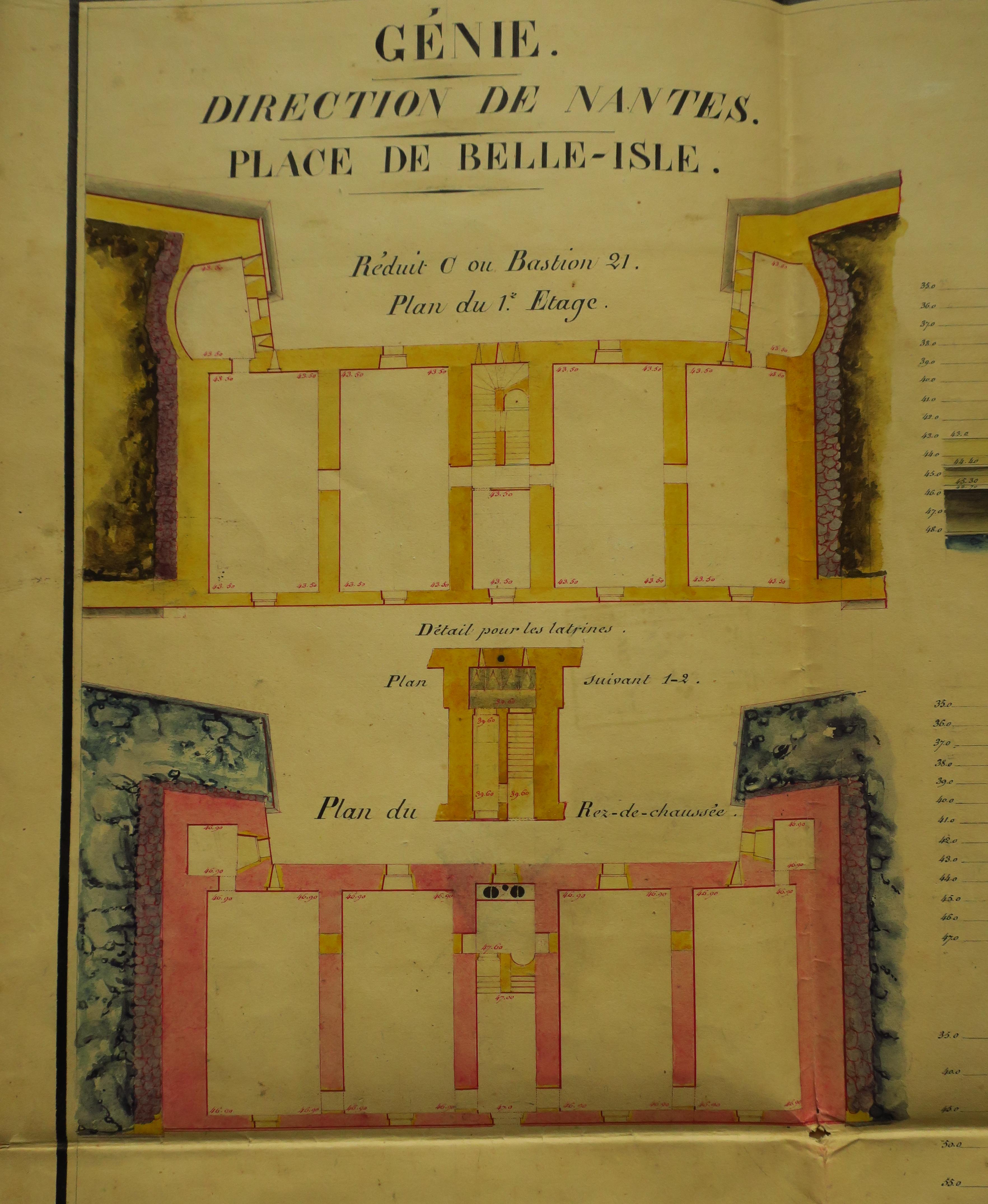 Service historique de la Défense, département Armée de Terre, Vincennes. Archives du Génie ; Article 8, Places françaises et d'Algérie : 1 VH 290, Place de Belle-Île-en-Mer, projets et dépenses annuels, 1837-1842. Direction du Génie de Nantes, Place de Belle-Ile, feuille n° 6 des projets pour 1841, achèvement de l'enceinte de Palais, 27 février 1841.