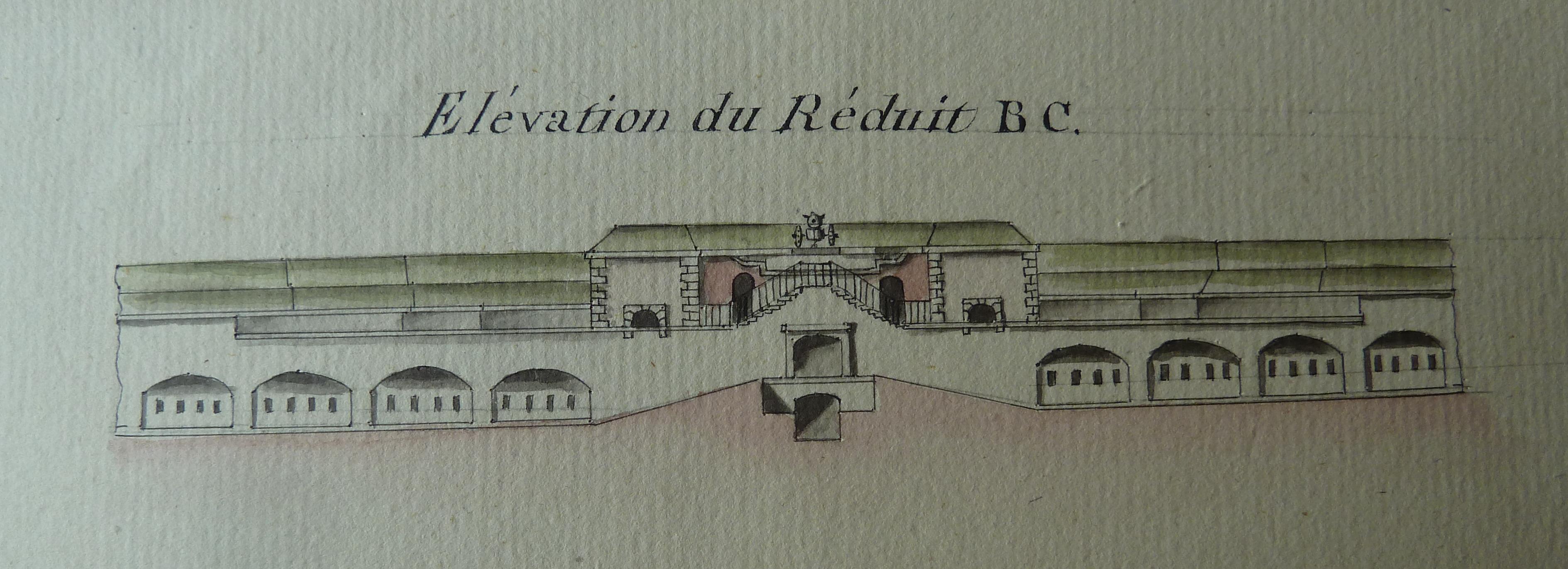 Service historique de la Défense, département Armée de Terre, Vincennes. Archives du Génie ; Article 8, Places françaises et d'Algérie : 1 VH 286, Place de Belle-Île-en-Mer, projets et dépenses annuels, 1807-1816. Direction du Génie de Port-Louis, Place de Belle-Ile-en-Mer, ouvrages au sud de la citadelle, situation au 1er octobre 1811, profils.