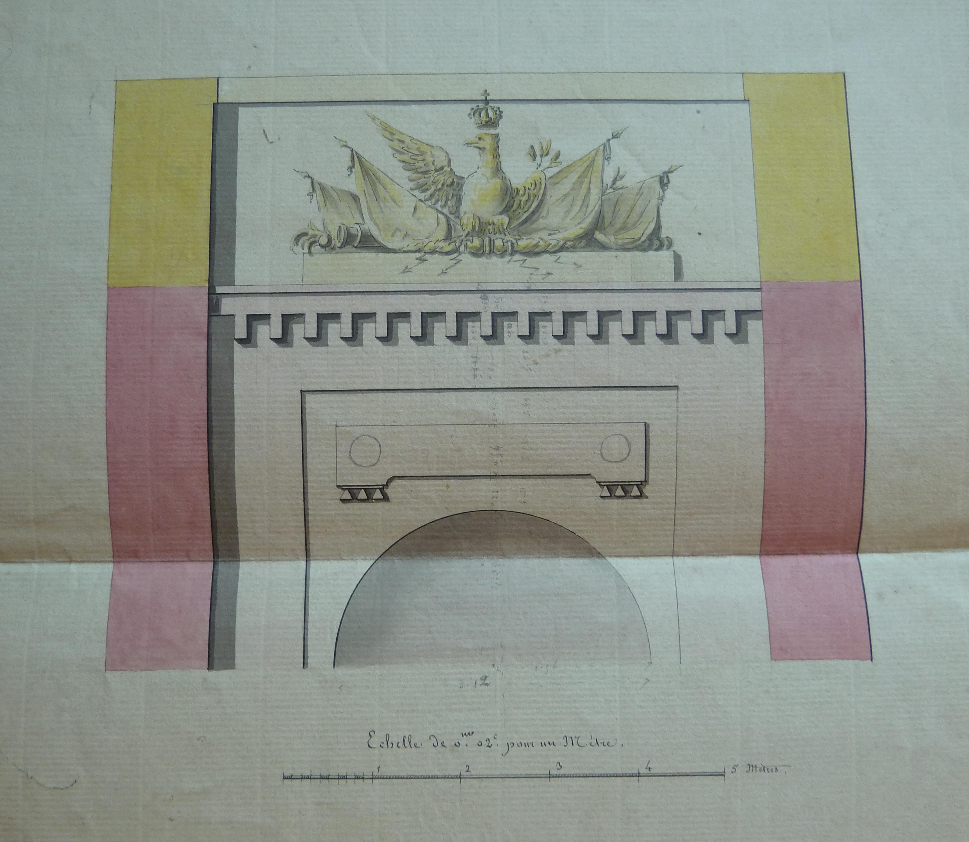 1 VH 286. Place de Belle-Isle, dessin de la façade extérieure de la porte de Bangor, 1809.Immatriculation