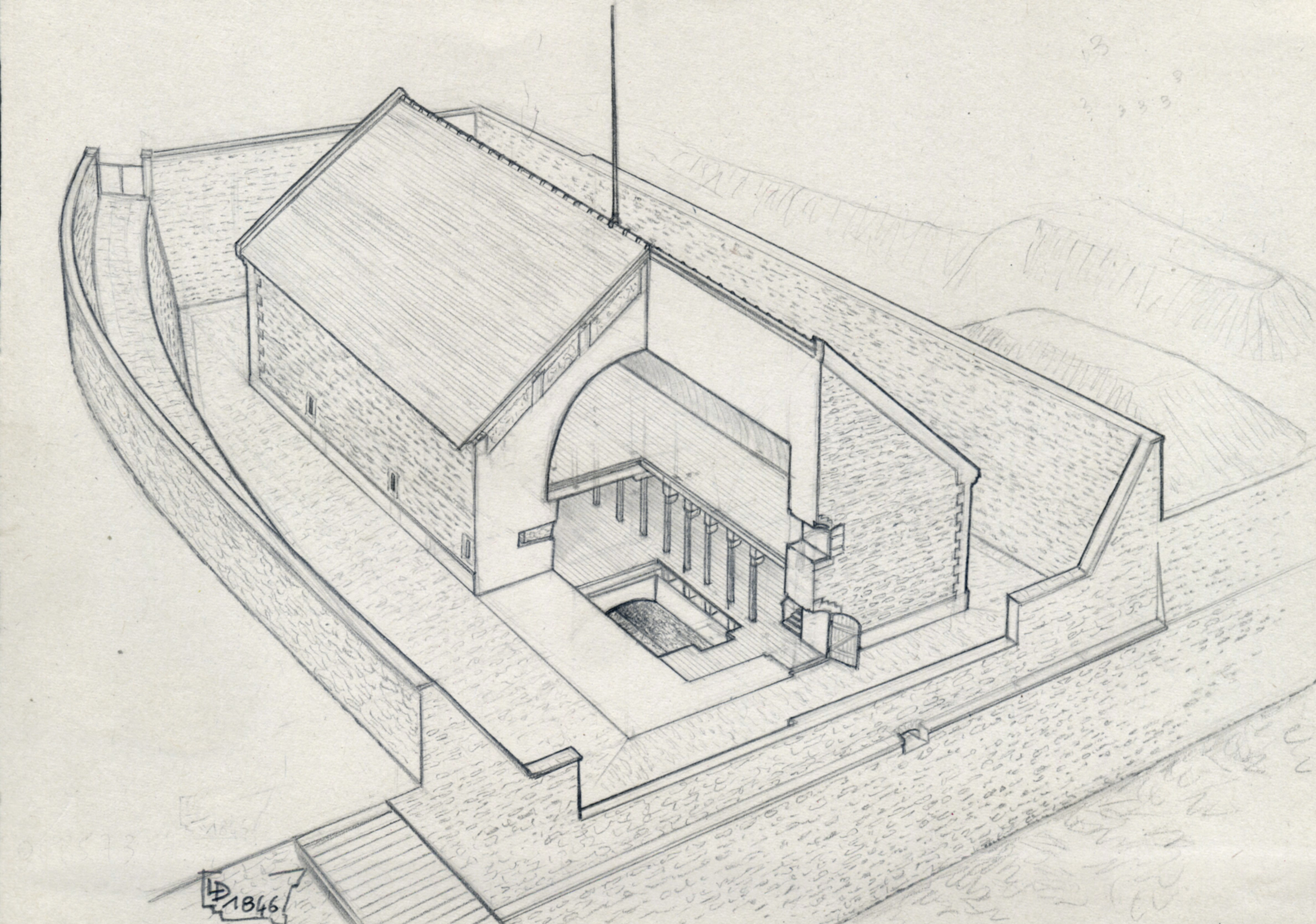 Le Palais, citadelle, magasin à poudre de l'Avancée, évocation vers 1870, par Lionel Duigou.Immatriculation