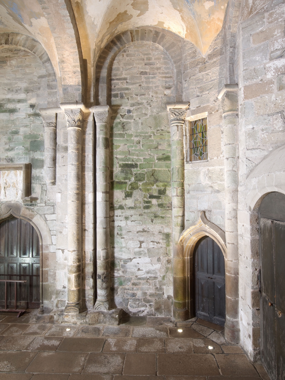 Vue intérieure de la tour Hasting, jonction entre l'élévation nord et l'élavation est. Au centre, porte de la tour d'escalierImmatriculation