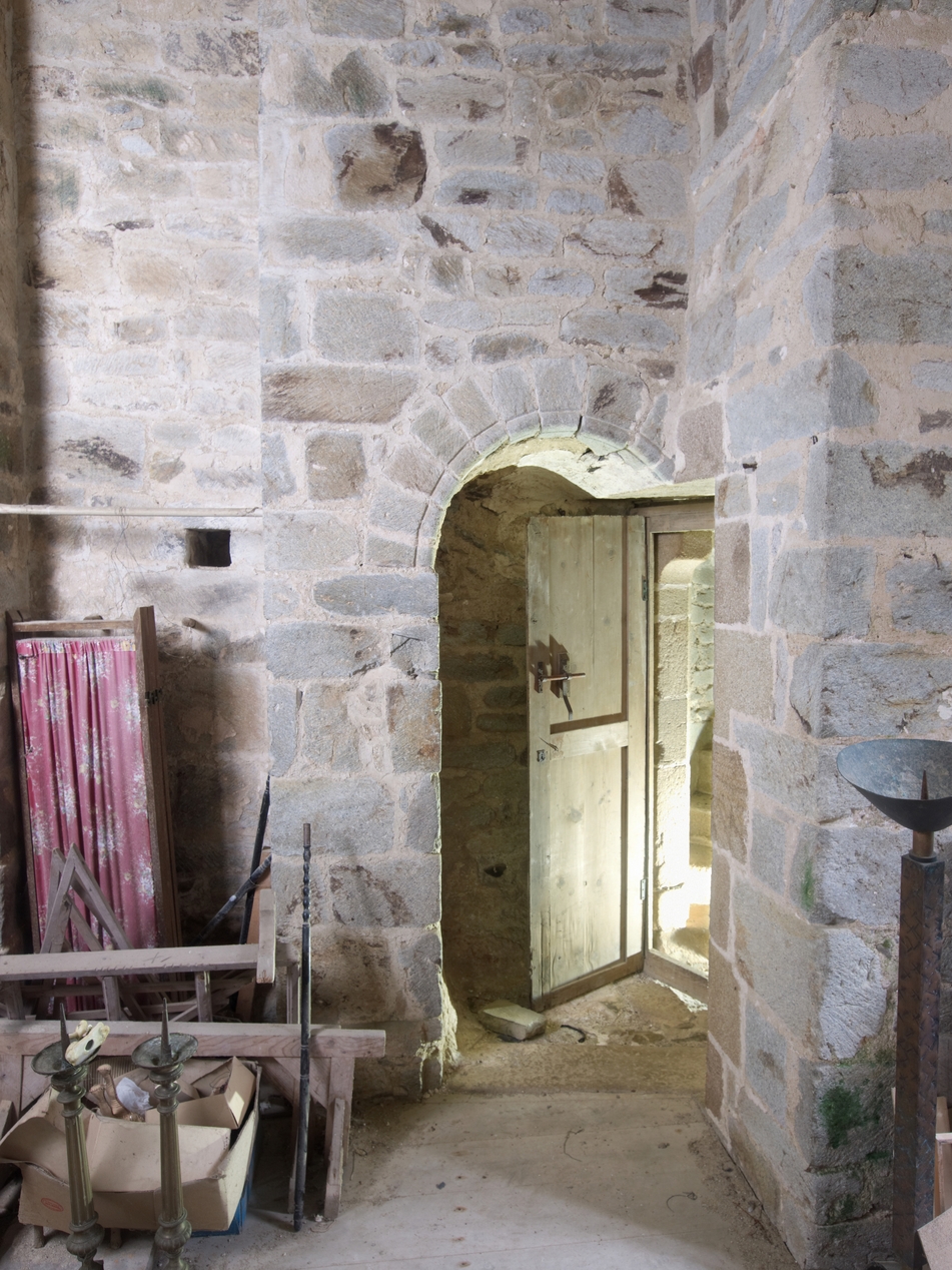 Deuxième niveau de la tour Hasting, angle nord-est, porte de l'escalier en vis. Côté tour, il s'agit d'un linteau sur coussinet en graniteImmatriculation