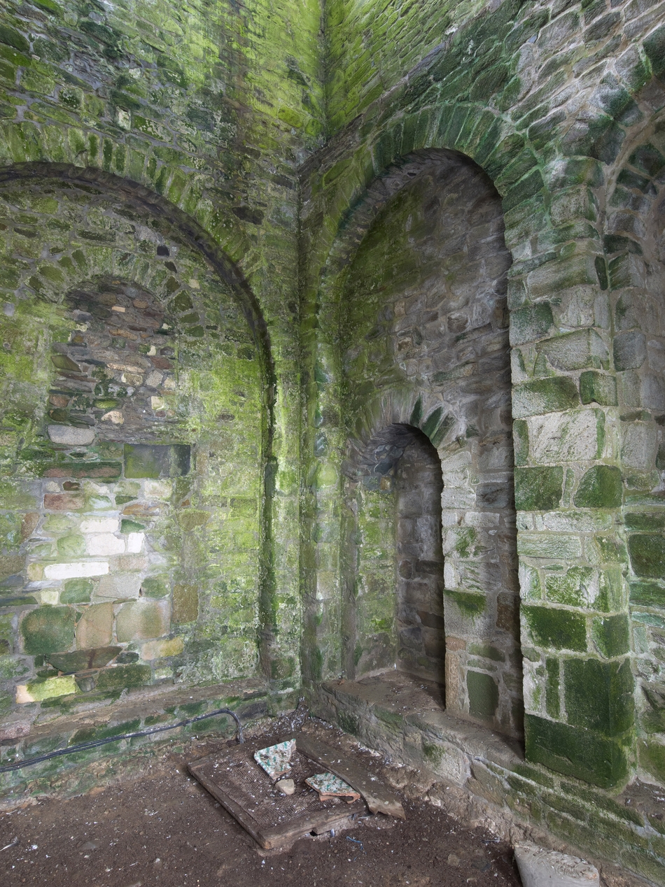 Troisième niveau de la tour Hasting (autrefois planchéié - niveau actuel sur l'extrados de la voûte), détail de l'angle nord-ouestImmatriculation