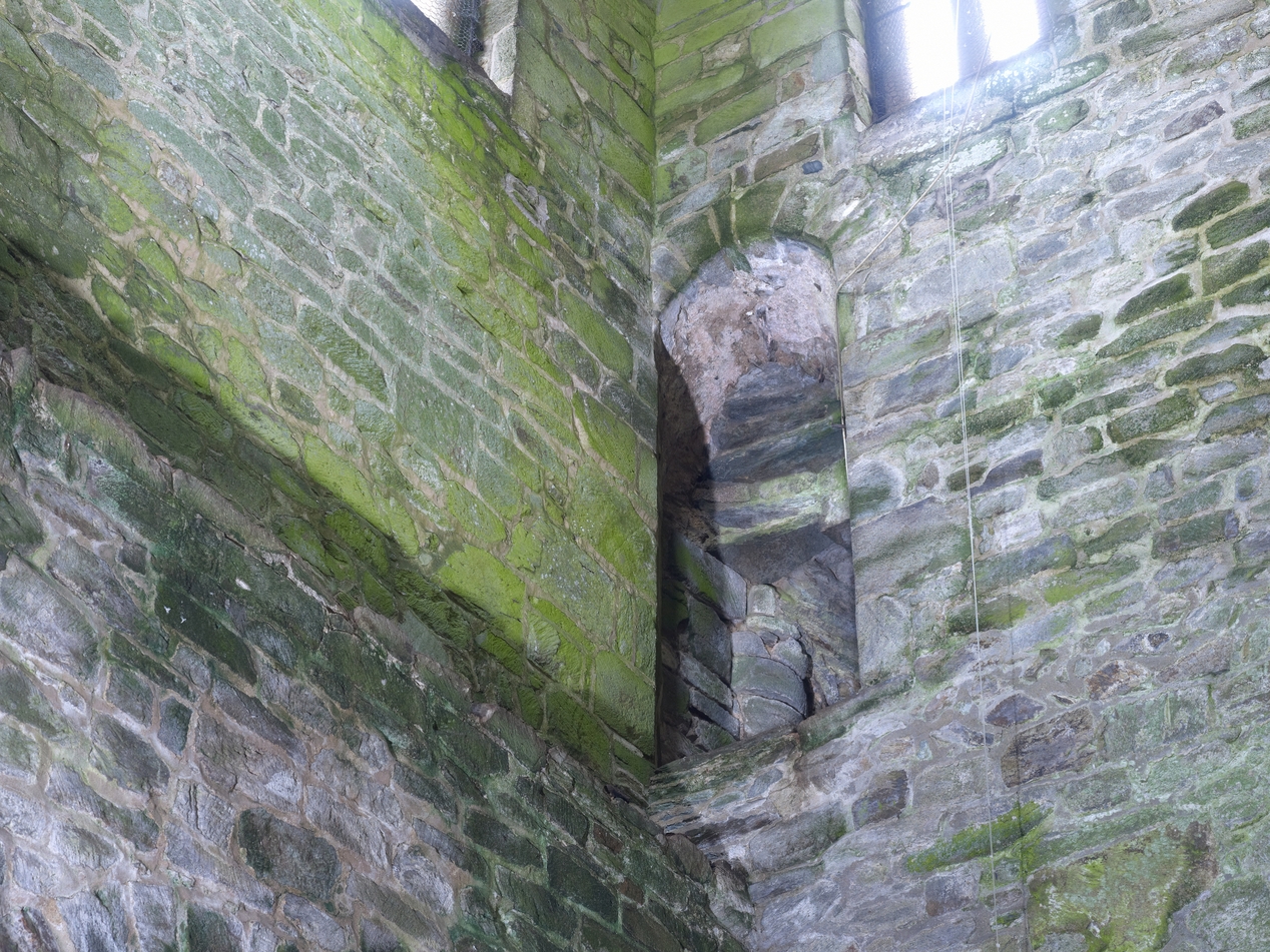 Quatrième niveau de la tour Hasting (autrefois planchéié), détail de l'angle nord-est, porte de l'escalier en visImmatriculation