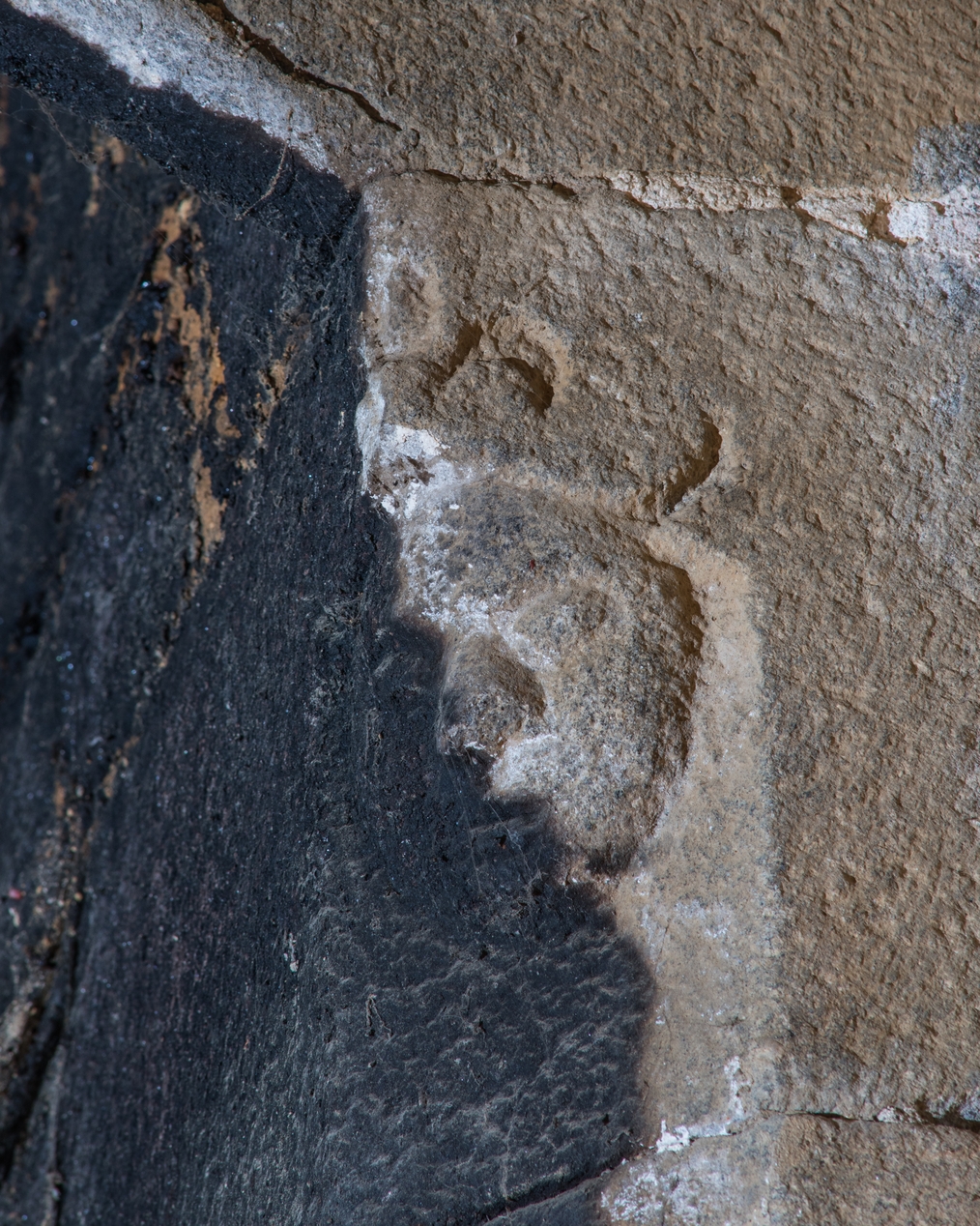 Logis secondaire, cheminée de l'étage, détail du visage sculptéImmatriculation