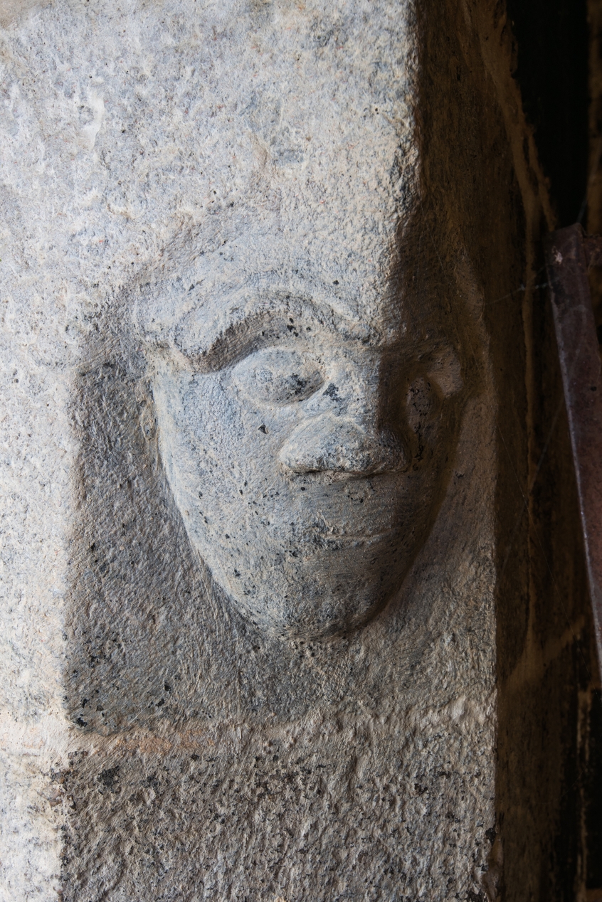 Logis seigneurial, cheminée du rez-de-chaussée, détail figure sculptéeImmatriculation