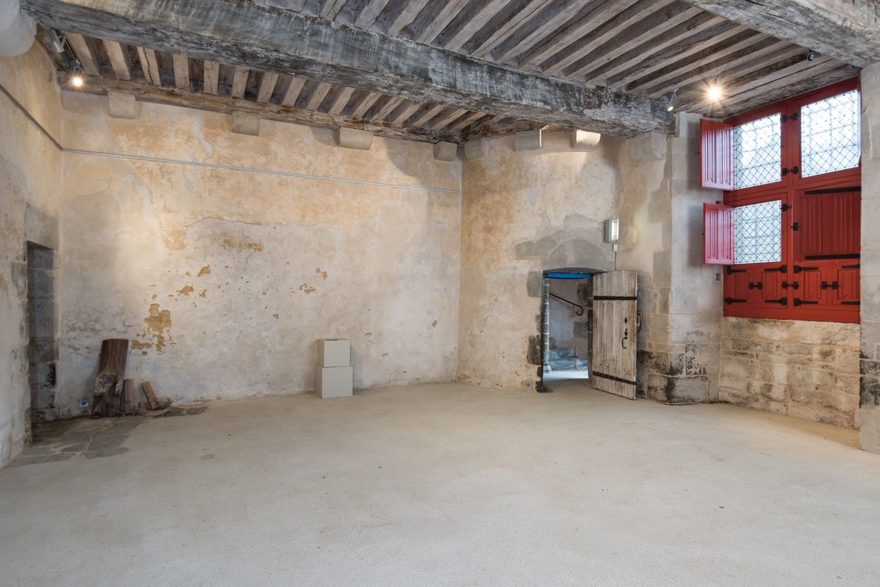 Logis seigneurial, rez-de-chaussée, porte donnant sur la basse cour et accès à l'escalierImmatriculation