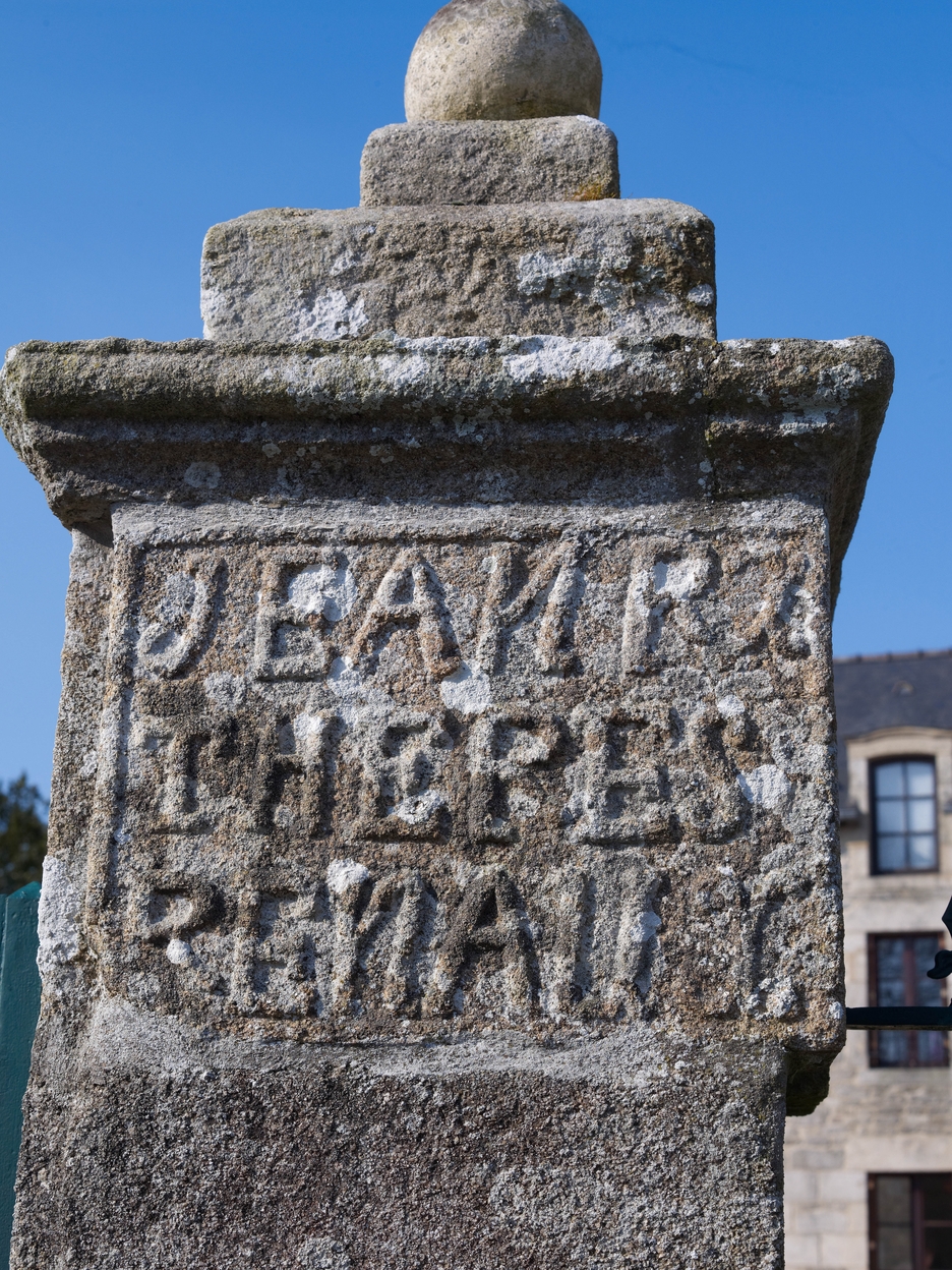 Inscription sur le pilier de la maison dite de la Commanderie.Immatriculation