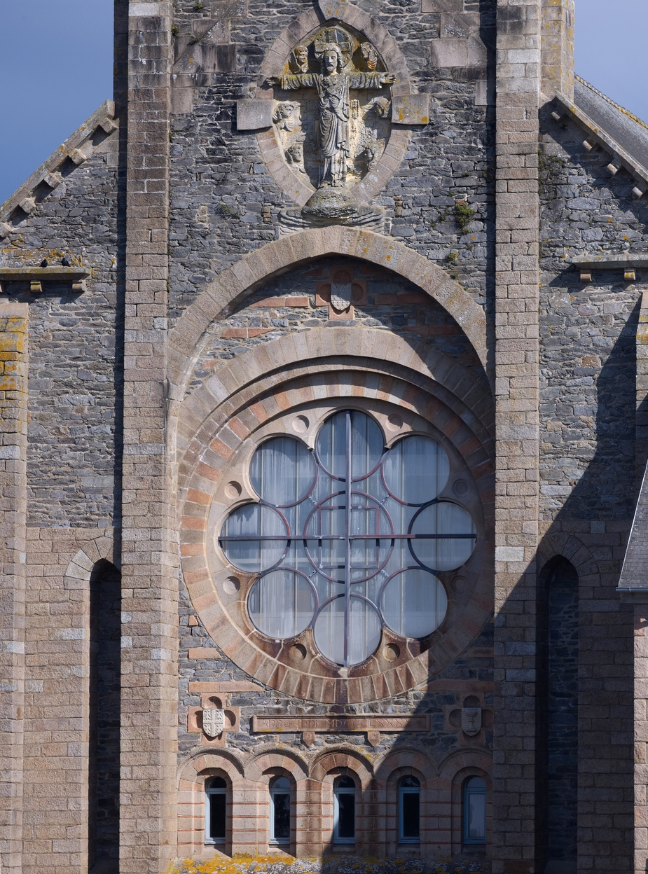 Tréguier : petit séminaire actuellement lycée Joseph Savina, chapelle, détail de l'élévation ouest, grande rosaceImmatriculation