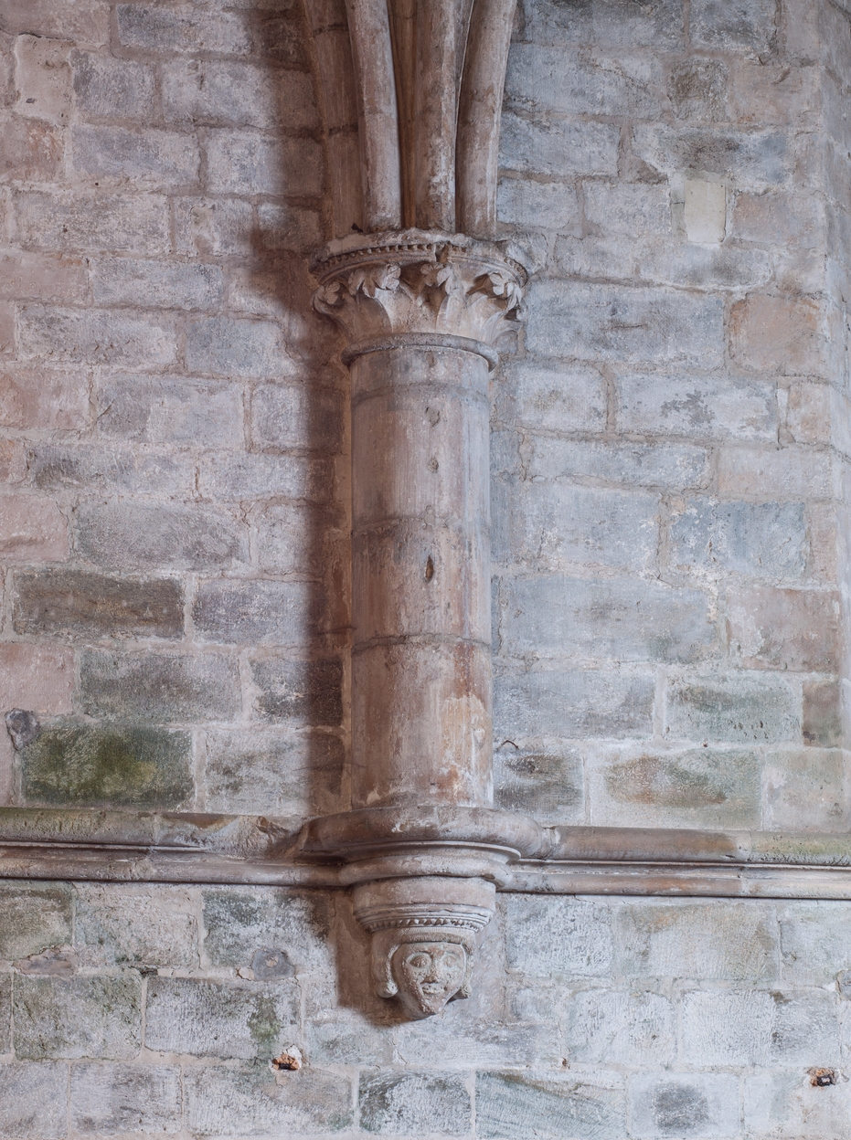 Collatéral sud, retombée des voûtes, détail d'un culot sculpté d'une tête humaineImmatriculation