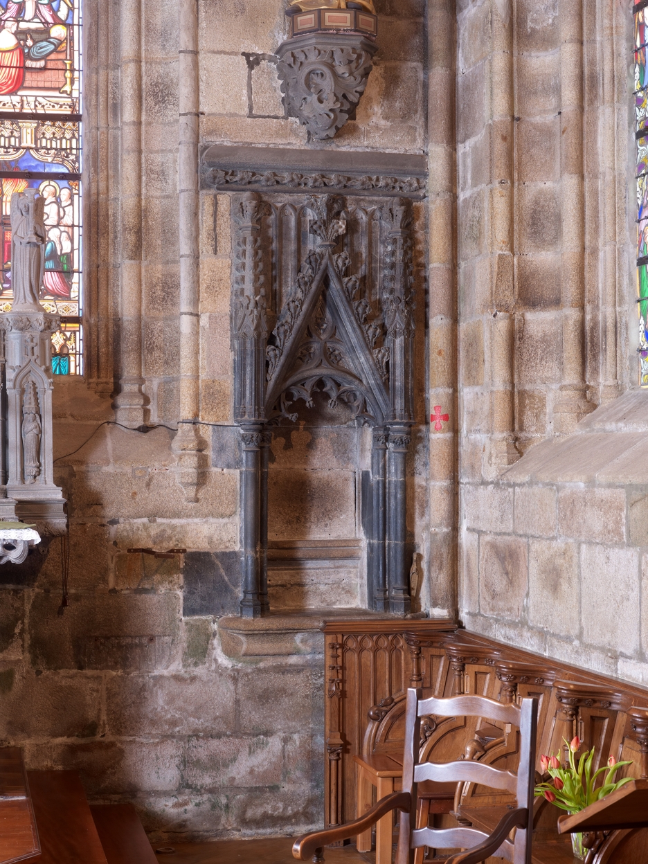Minihy-Tréguier, rue de l'Église : église Saint-Yves, choeur, crédence liturgiqueImmatriculation