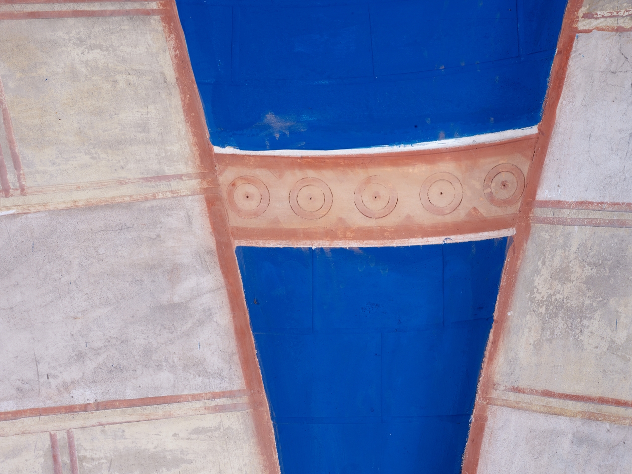 Tréguier, place de la République : chapelle du Petit Séminaire aujourd'hui Théâtre de l'Arche, détail des enduits peintsImmatriculation
