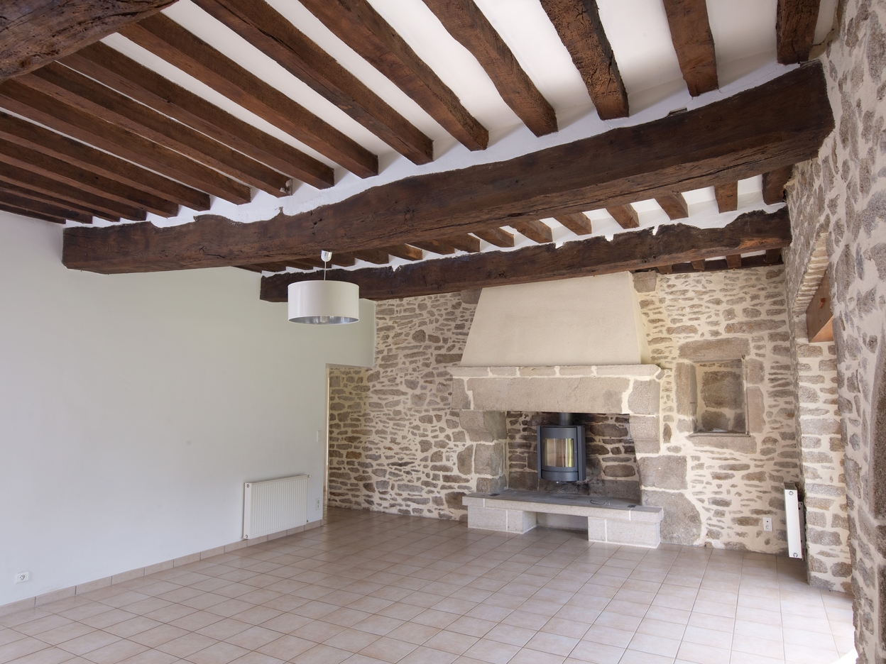 Vue intérieure de la maison : cheminée du rez-de-chaussée.Immatriculation