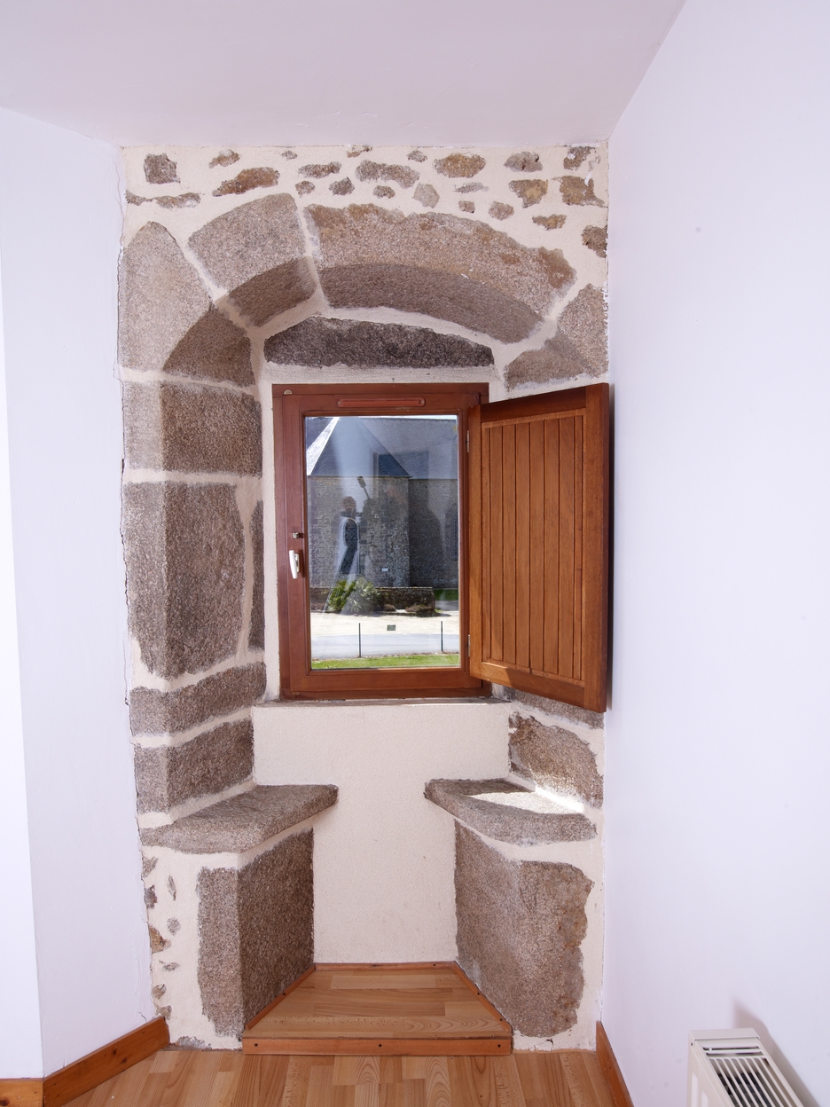 Fenêtre à coussiège à l'étage, façade principale.Immatriculation