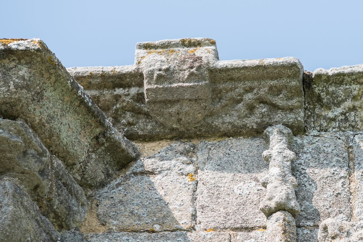La château, partie haute de la tour d'escalier : corniche sculpté portant les armoiries de la famille FerréImmatriculation